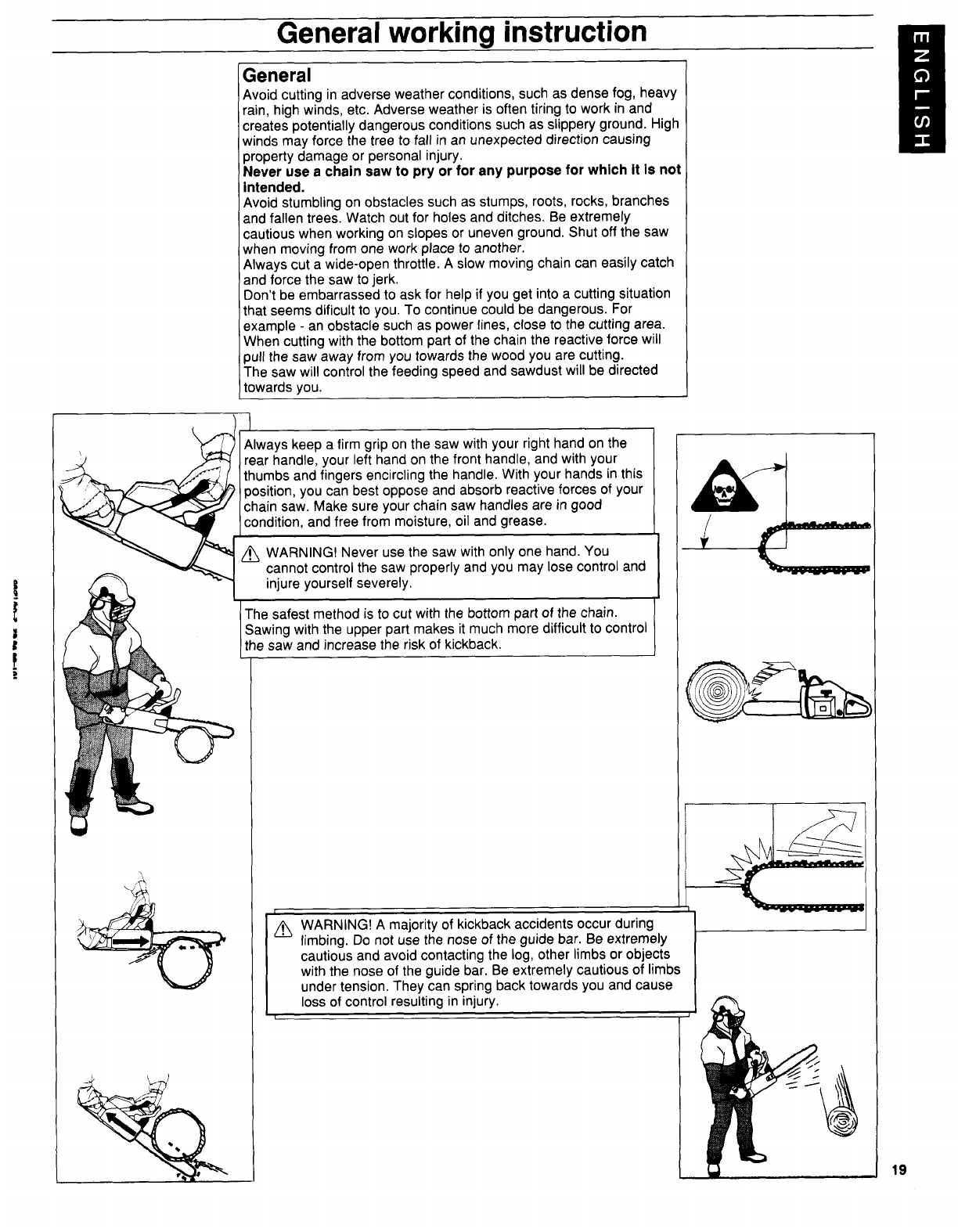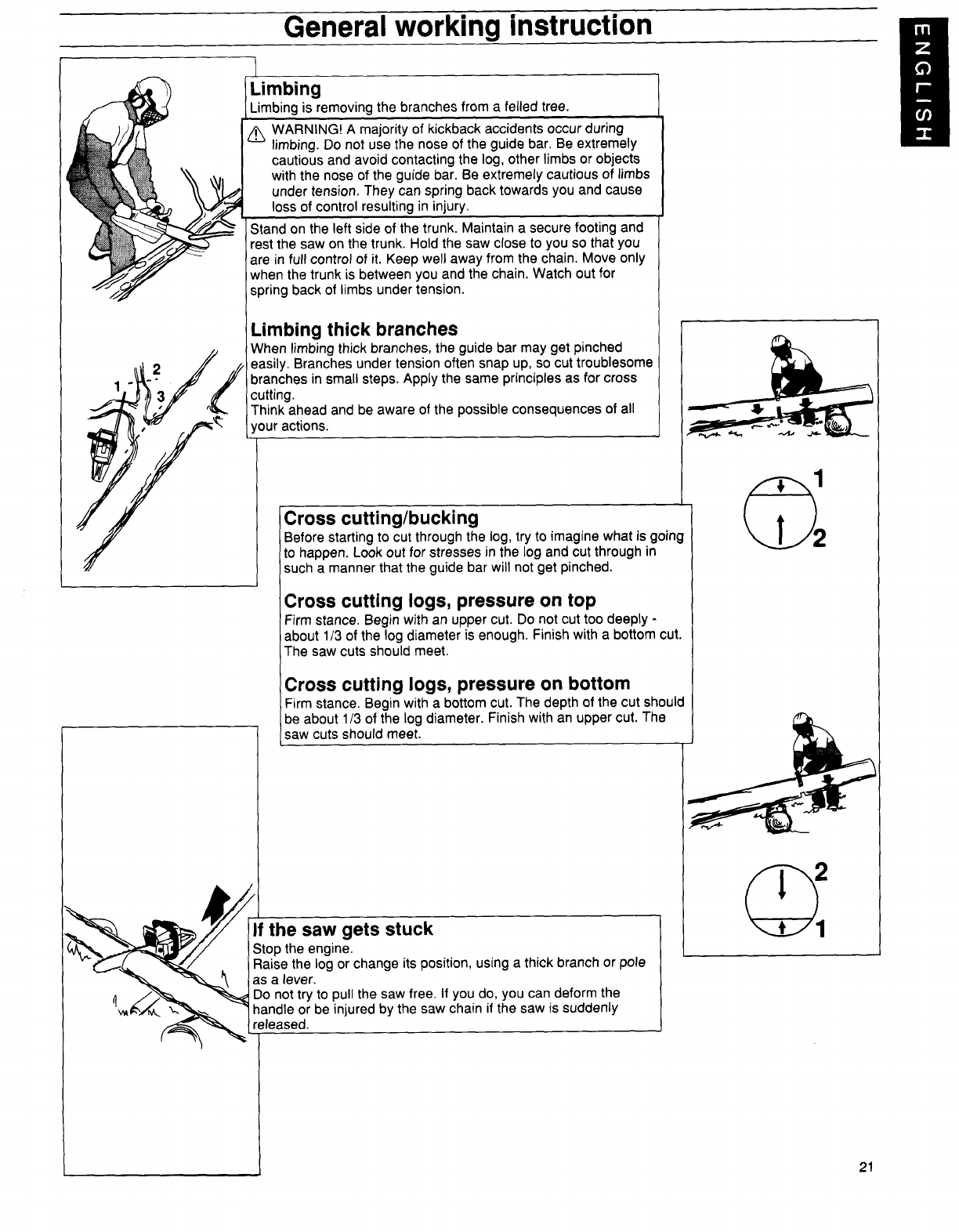WIimbing. Do not use the nose of the guide bar. Be extrem~ly