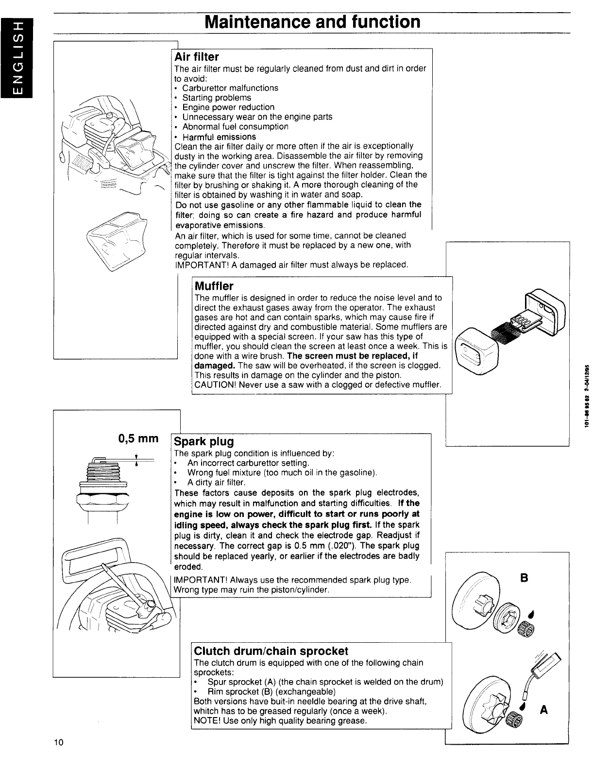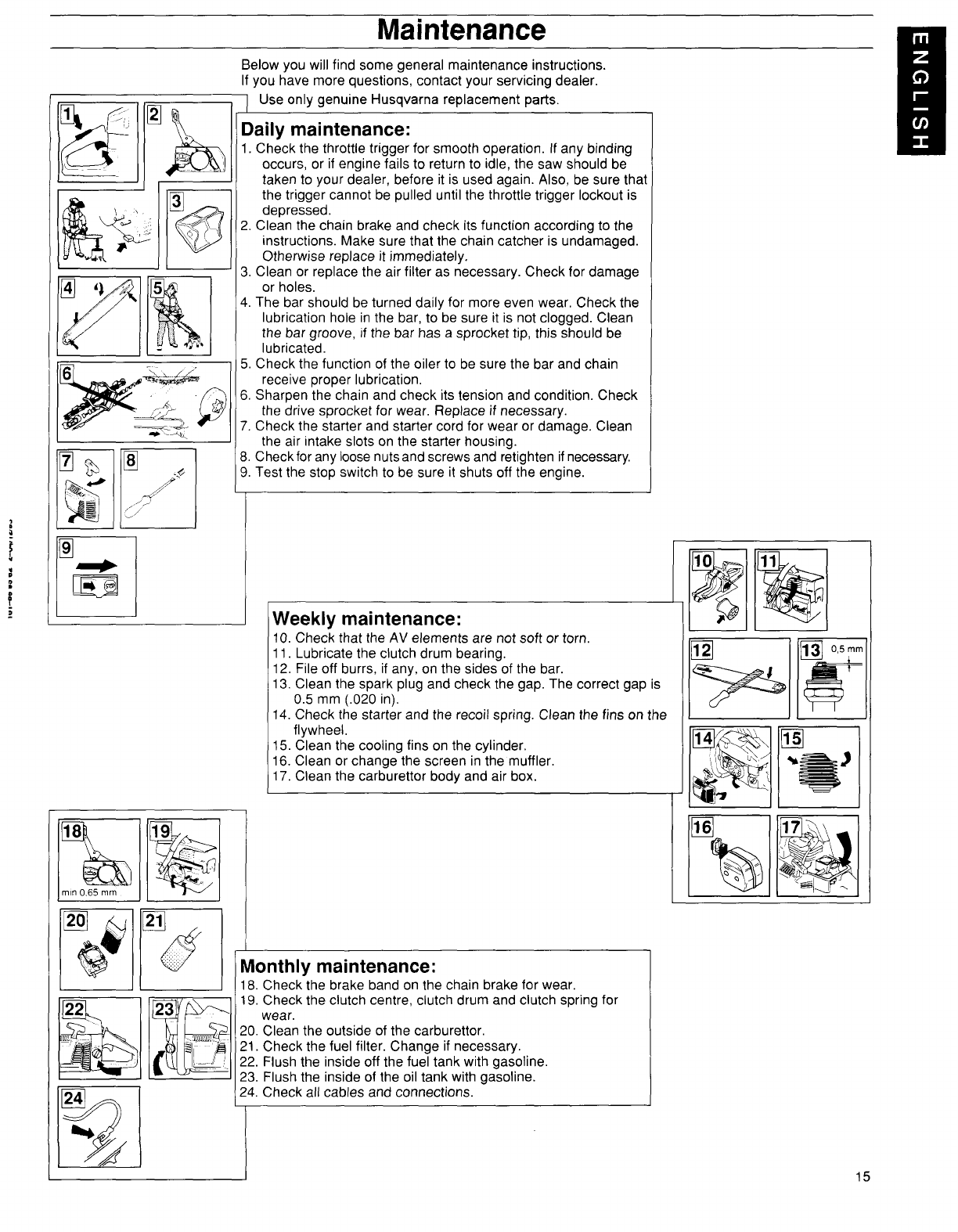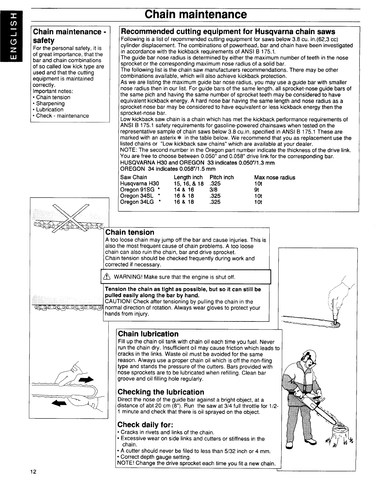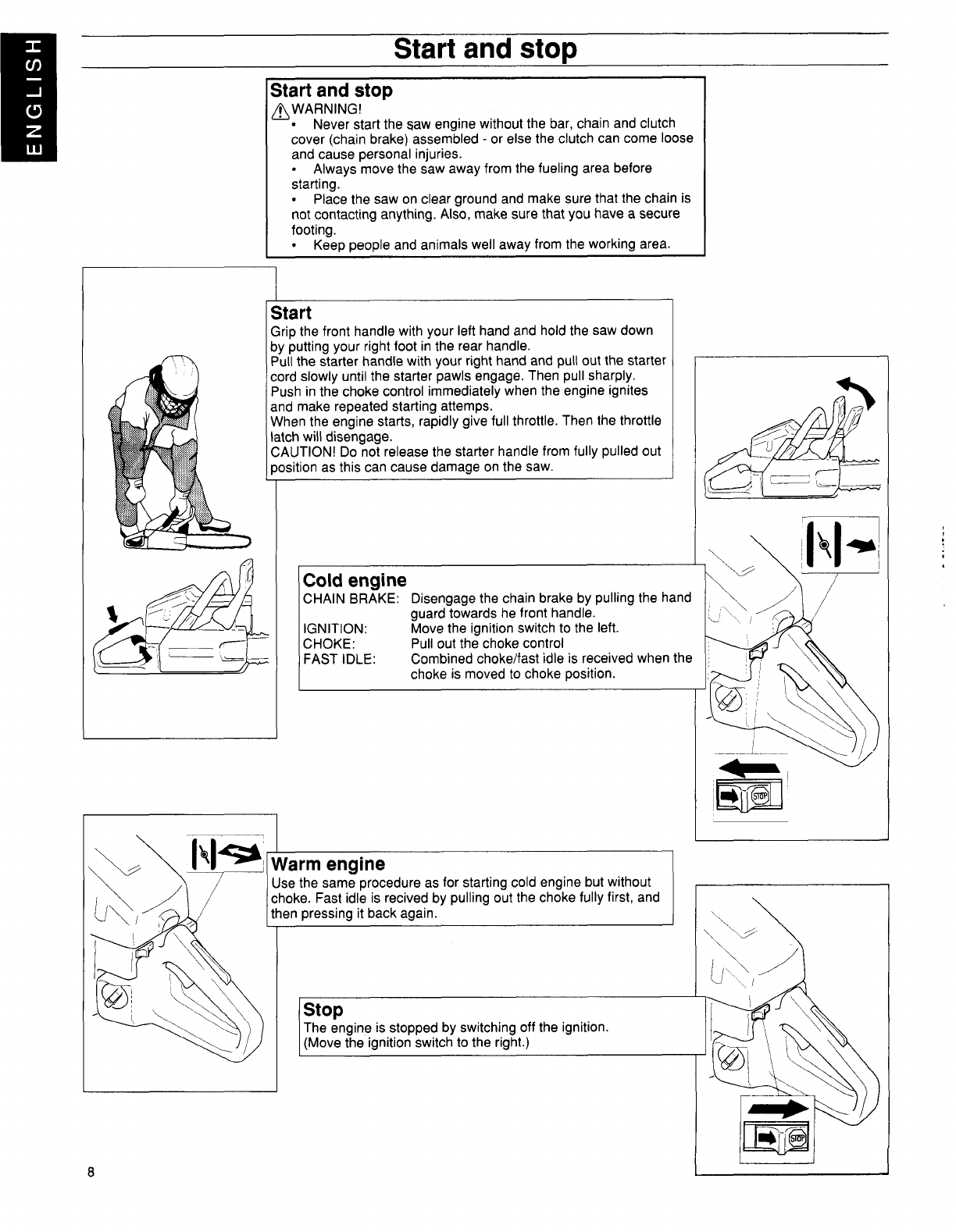 sDo not start sawing until asufficient amount of chain oil has reached the chain (page 7,12-13).