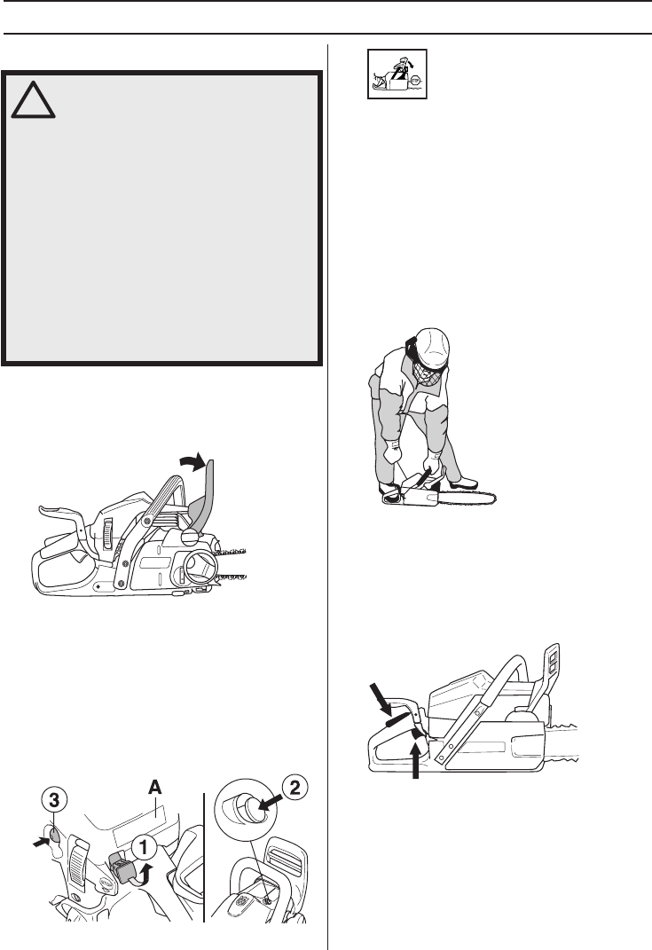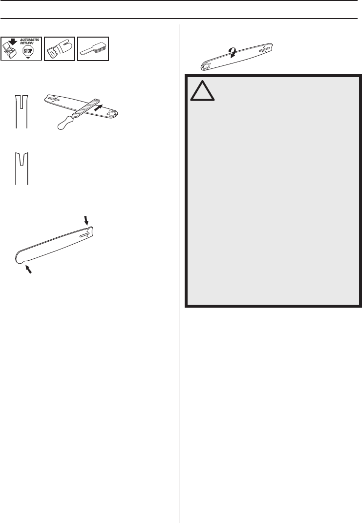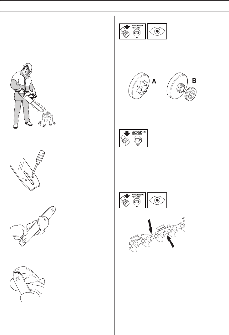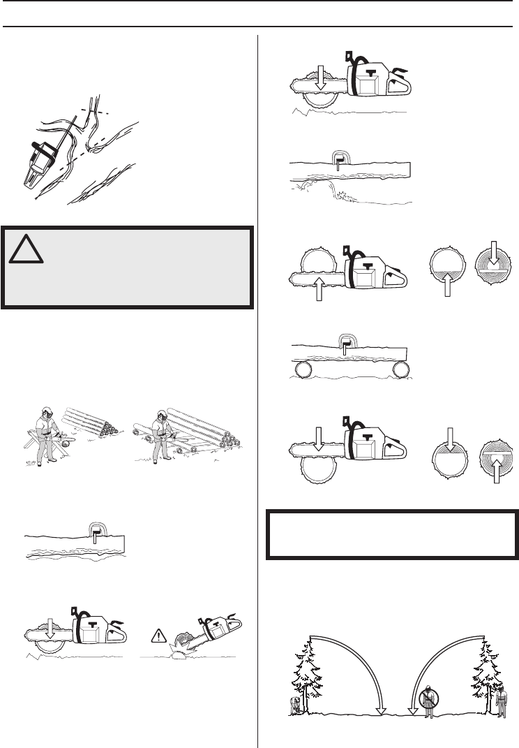 from obstacles. Do not let the nose of the guide bar