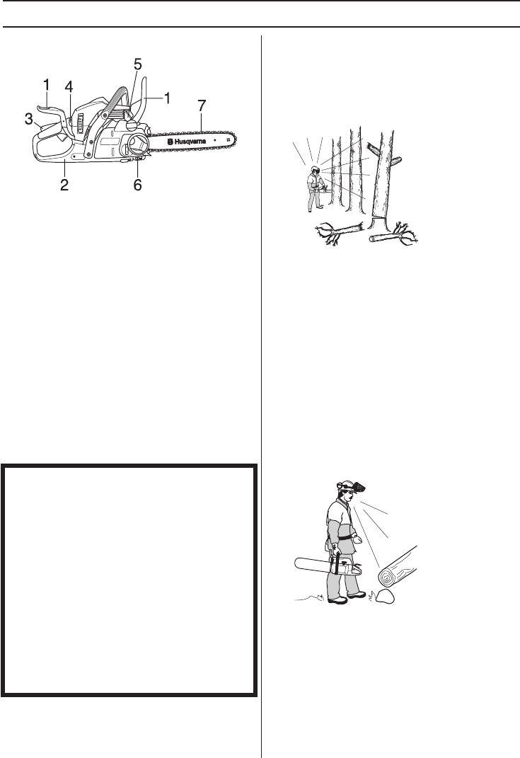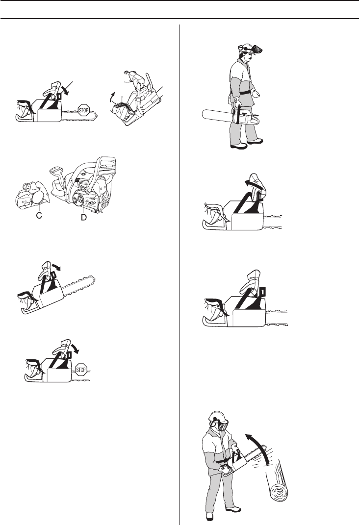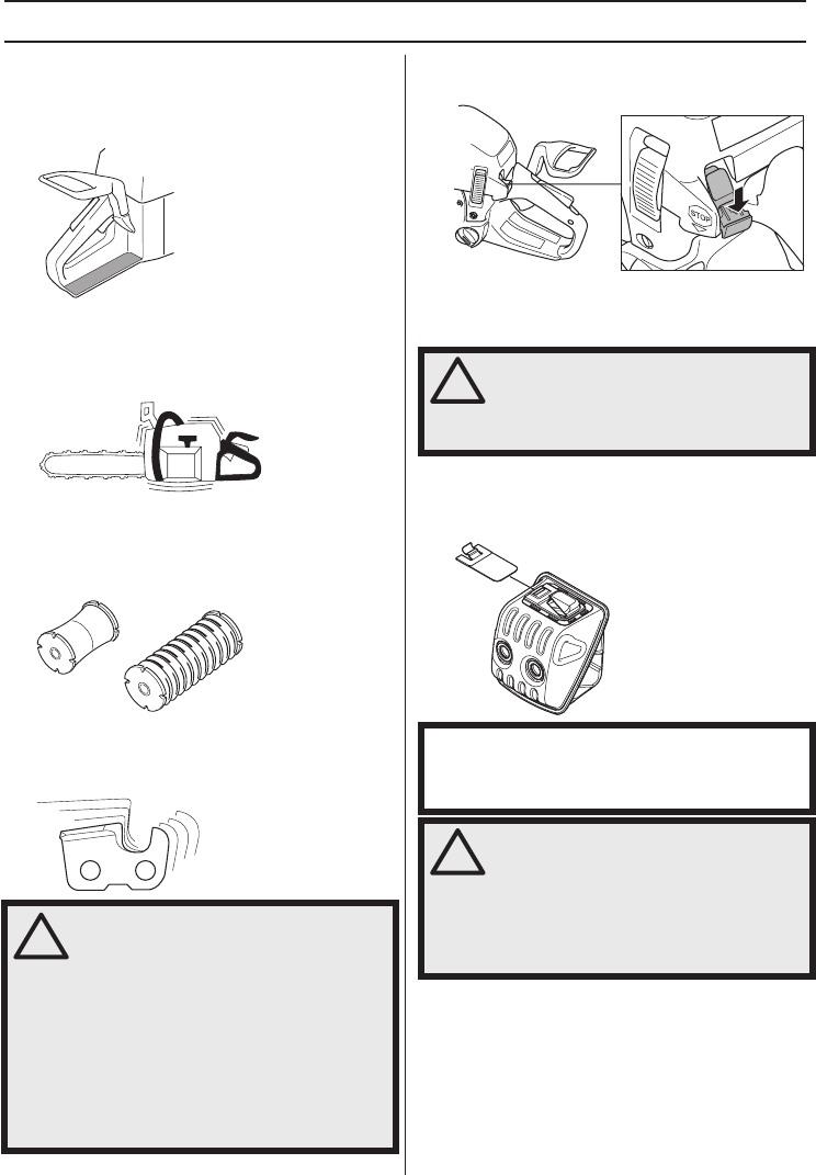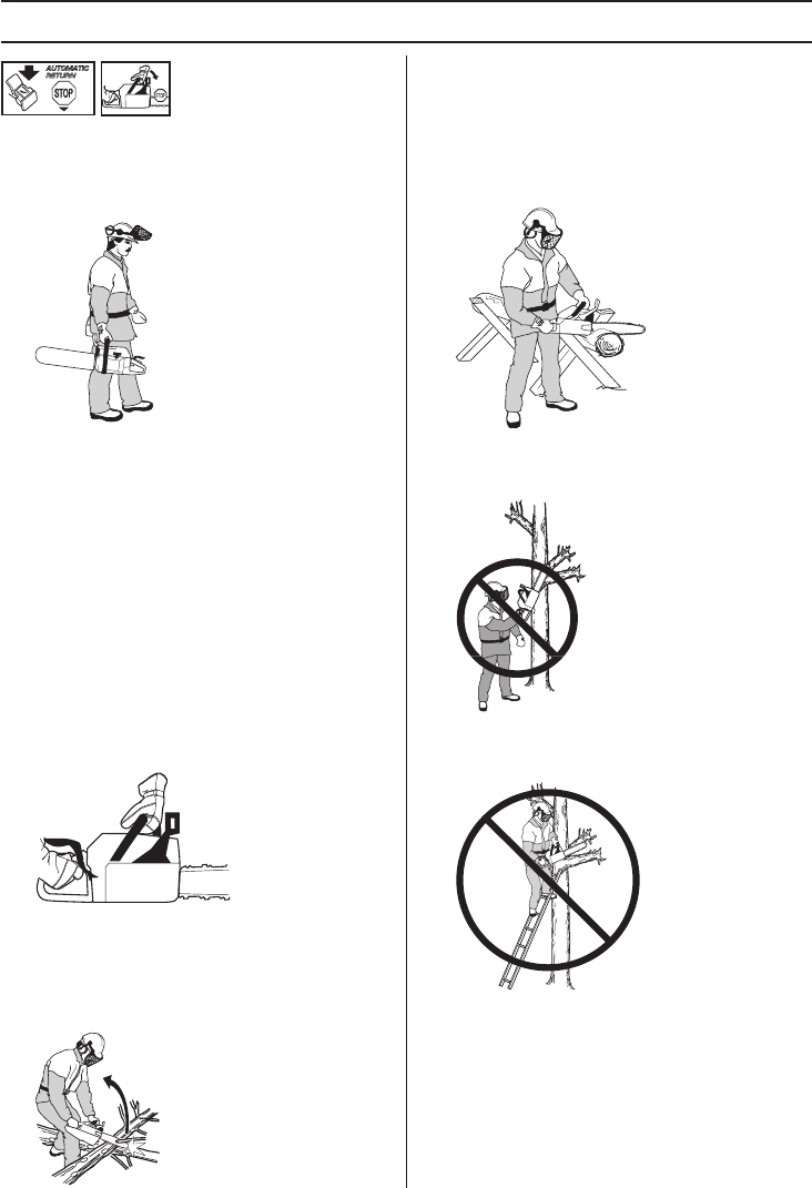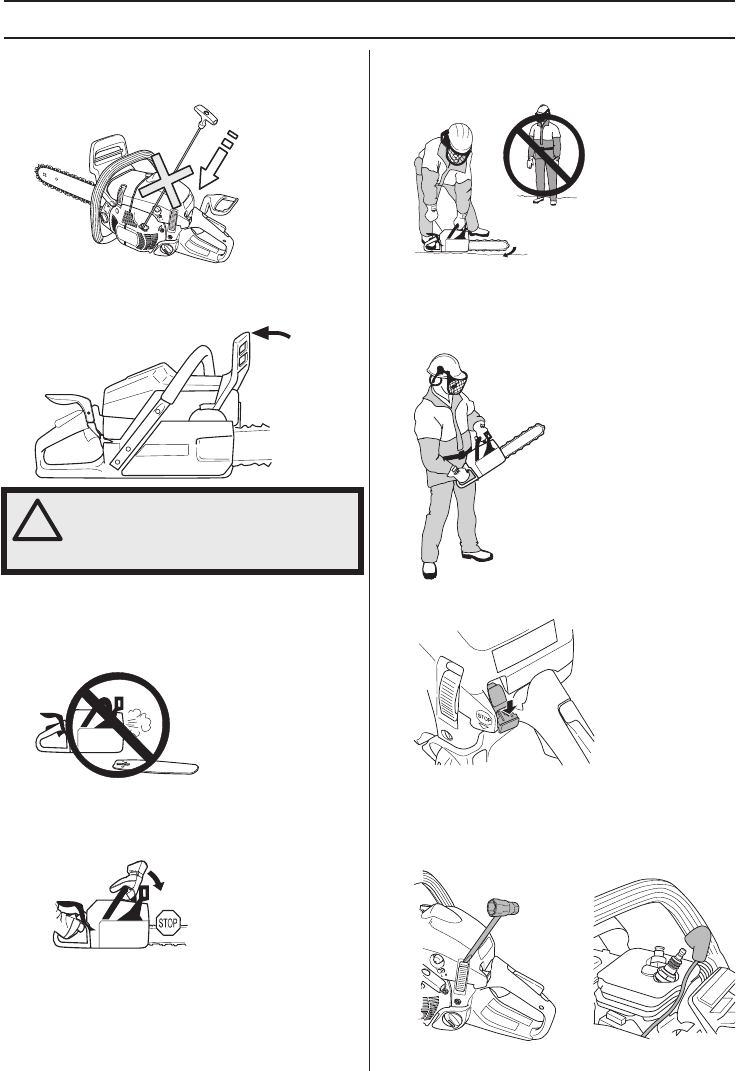 from obstacles. Do not let the nose of the guide bar