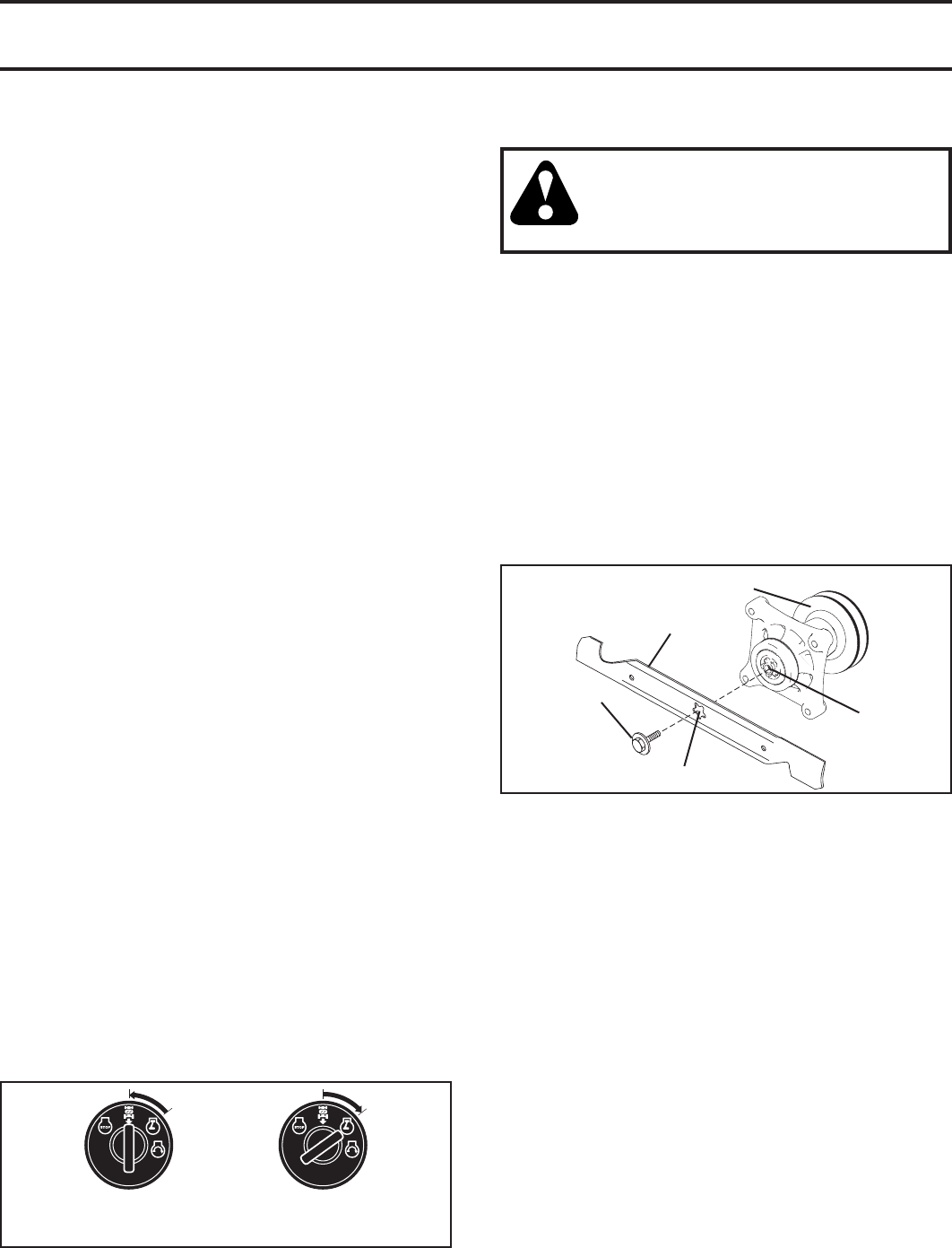 and burn. Do not allow the mower deck to plow leaves