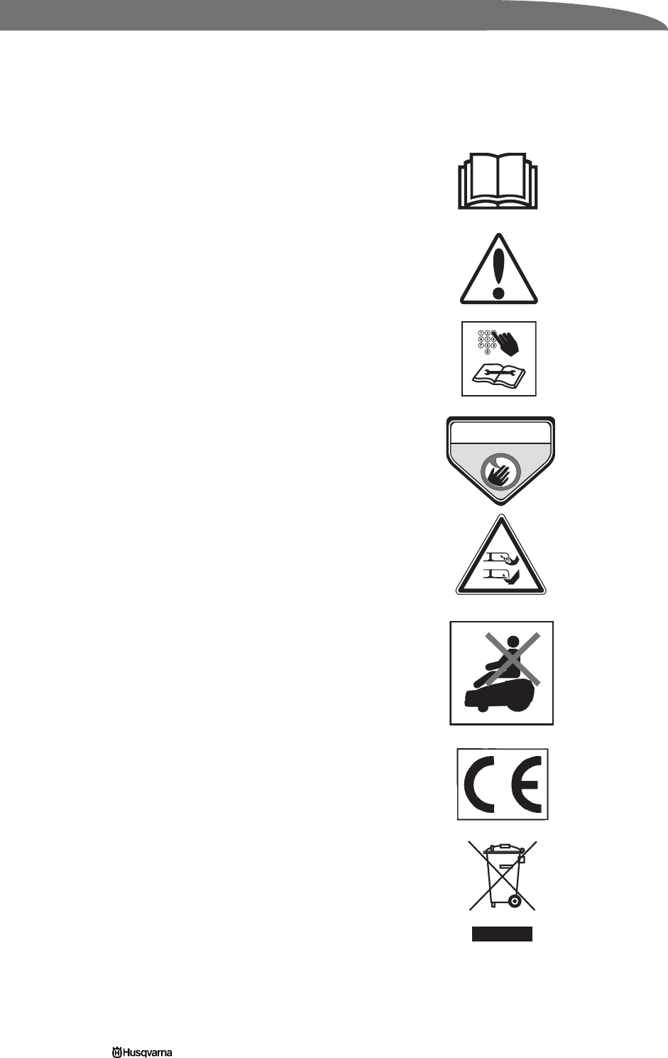1.2 Symbols on Automower ............................................................. 6