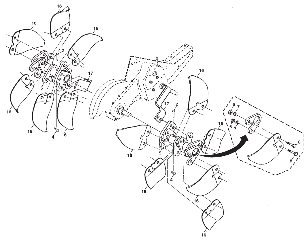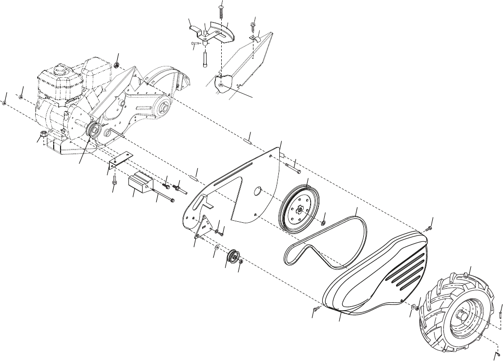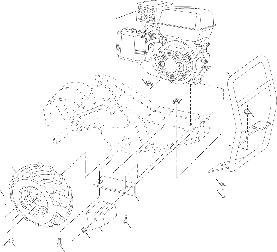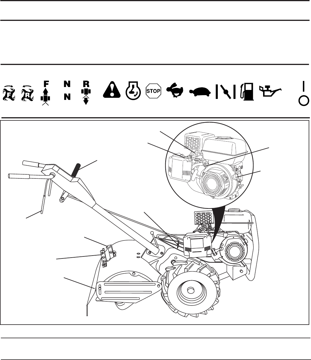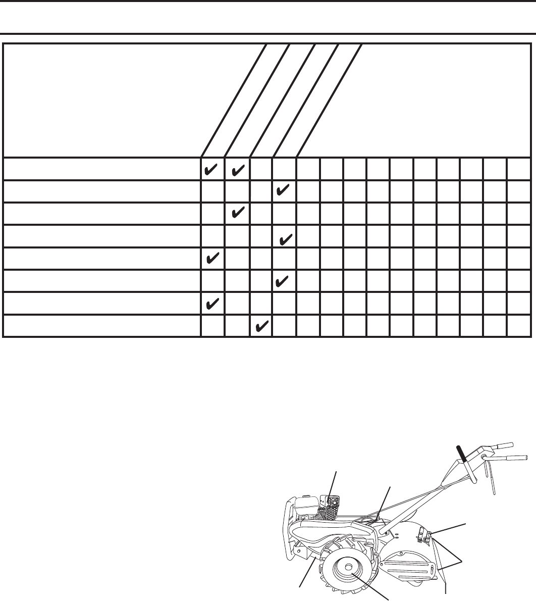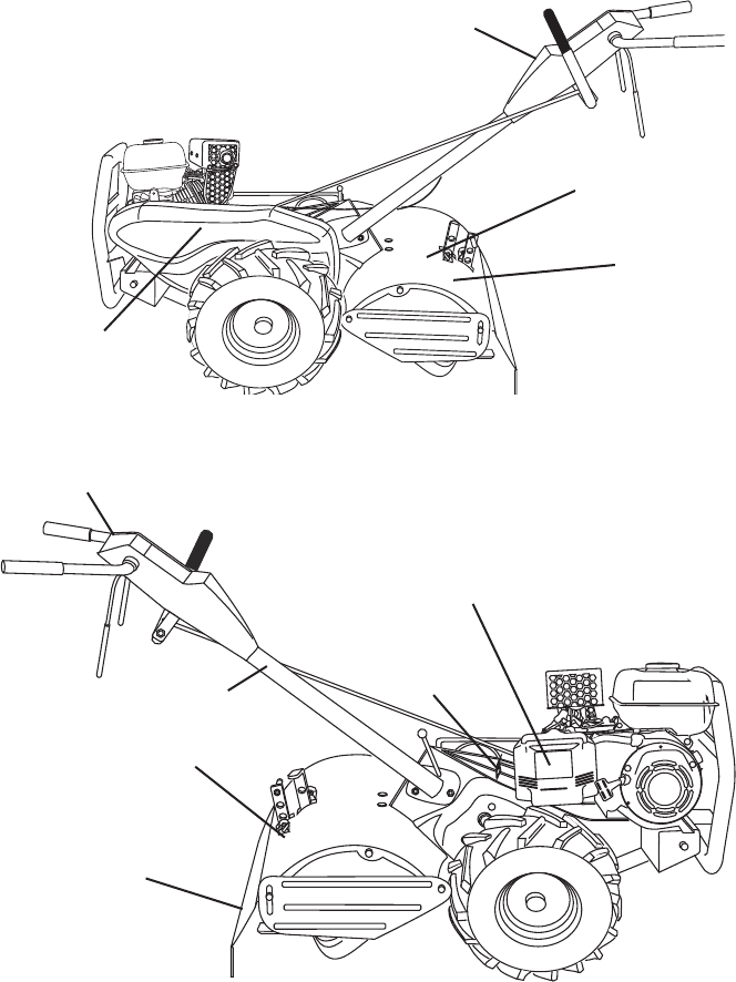 • Never operate the tiller without proper guards, plates,