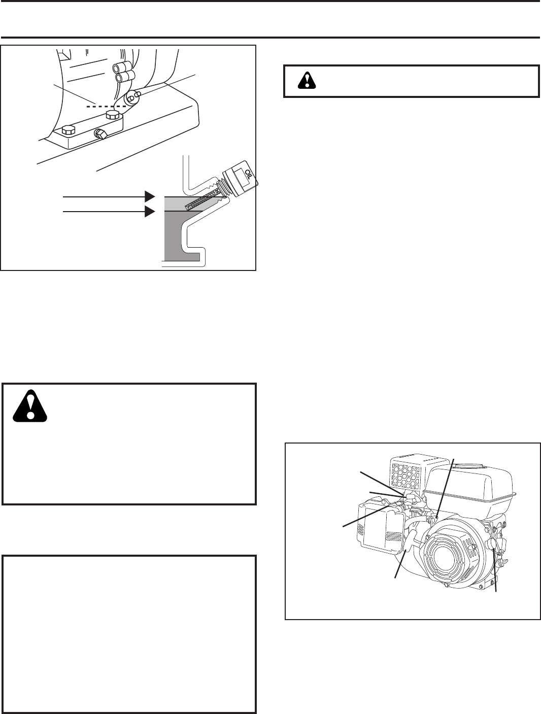 • Never add fuel to a running engine or hot engine.