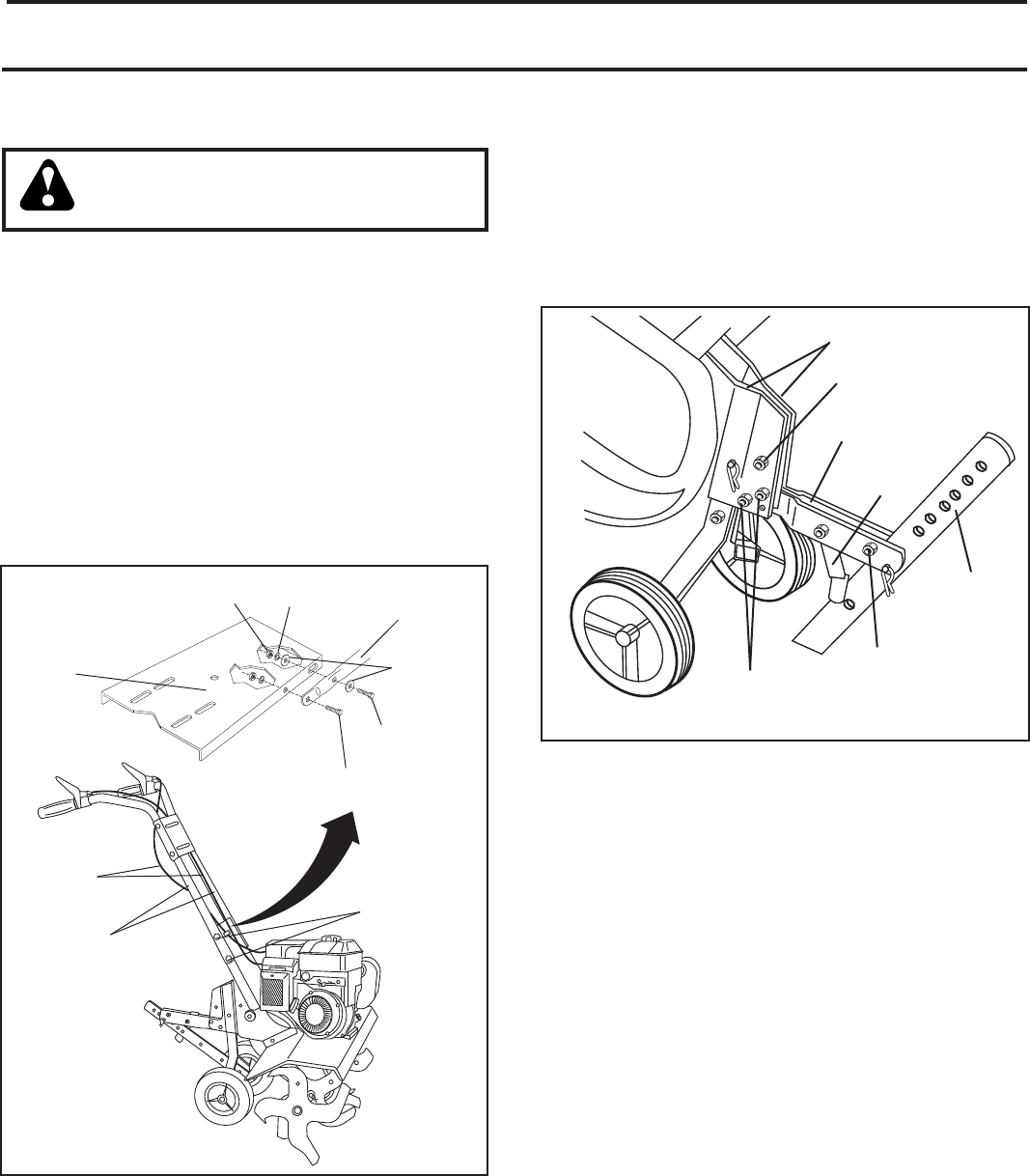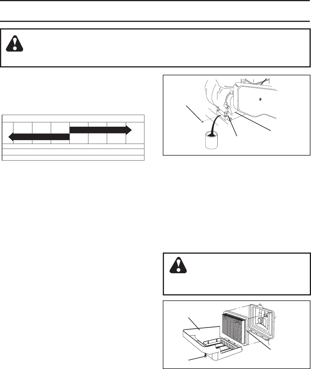 • Fill fuel tank outdoors with extreme care. Never fill fuel