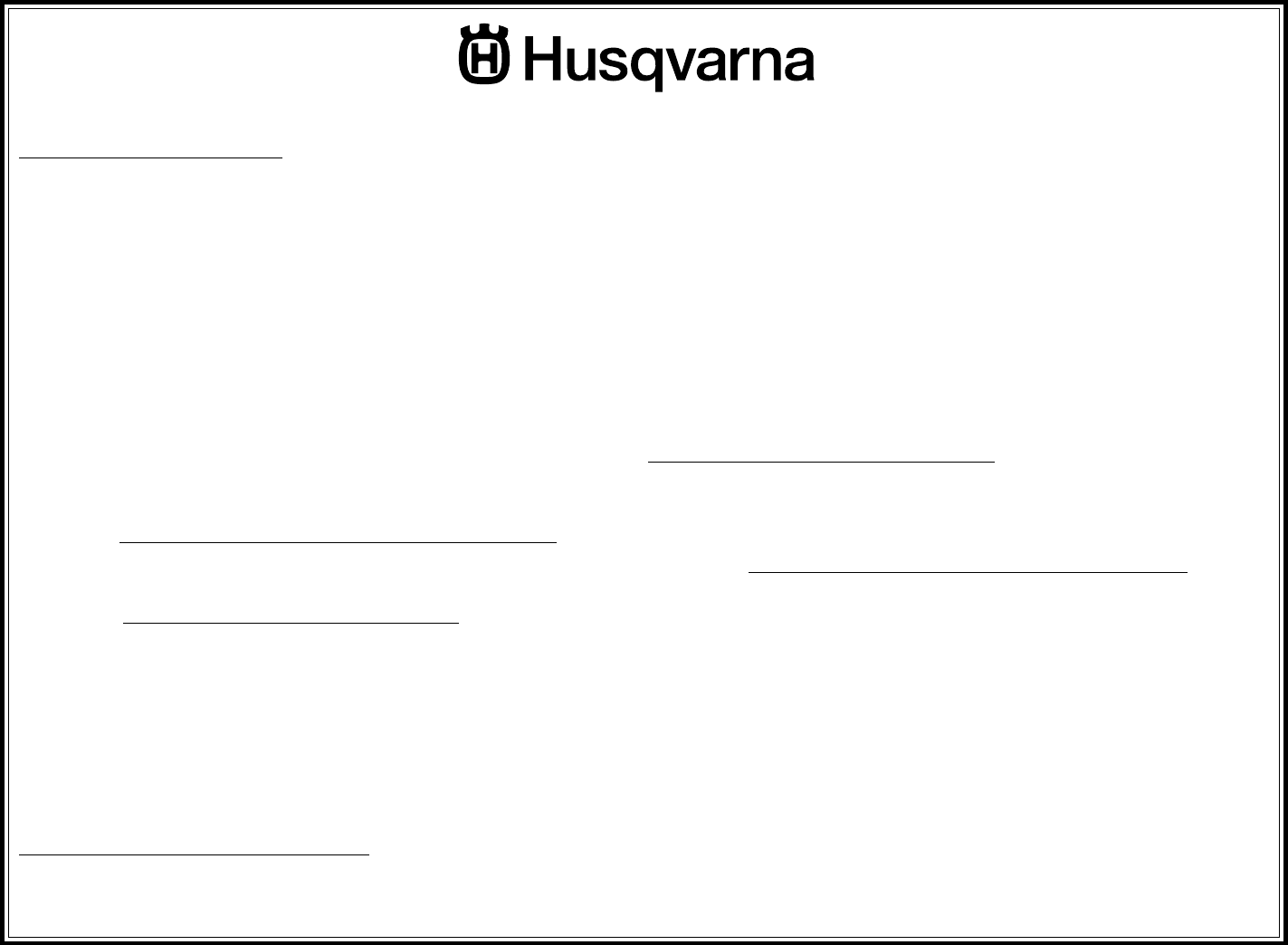 filled out and mailed to Husqvarna Forest & Garden Company. This card should be mailed within ten (10) days