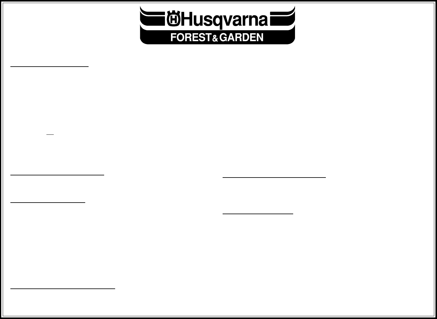 filled out and mailed to Husqvarna Forest & Garden Company. This card should be mailed within ten (10)