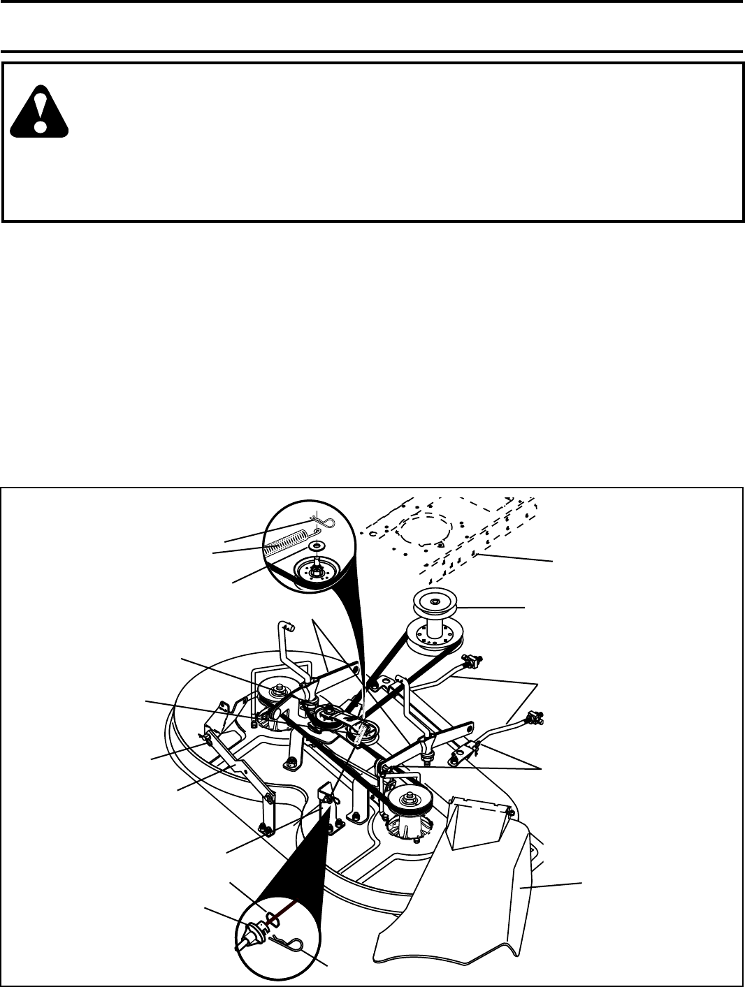 and burn. Do not allow the mower deck to plow leaves