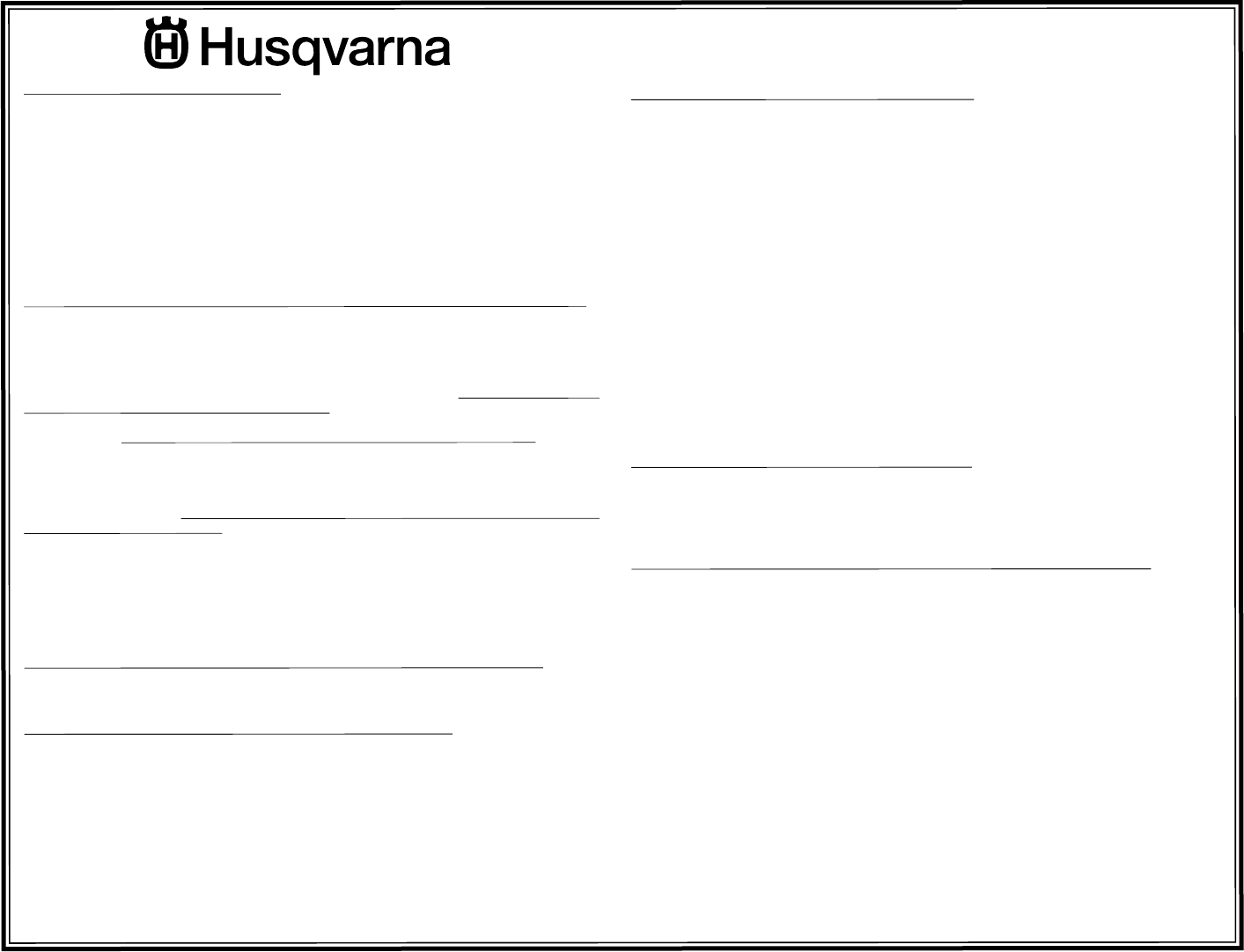 THE PUR CHAS ER. HUSQVARNA SHALL NOT BE LIABLE FOR ANY INCIDENTAL OR CONSEQUENTIAL