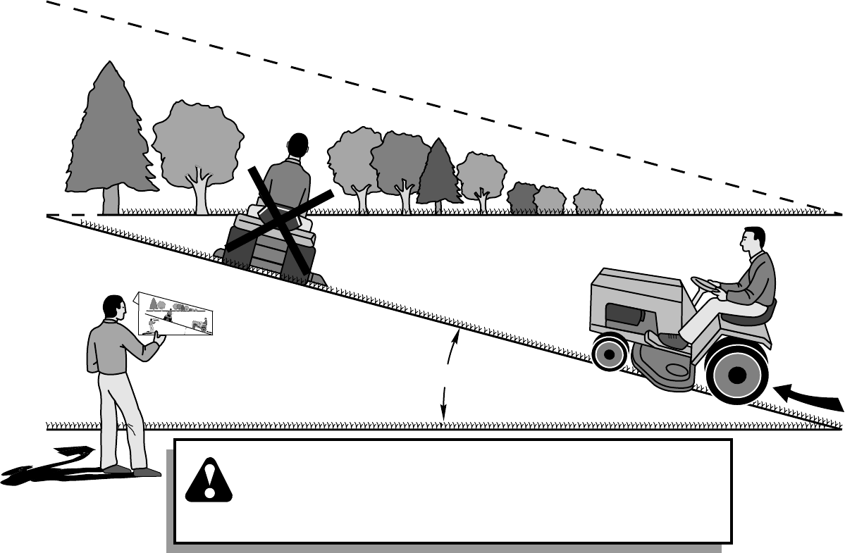 down the face of slopes, never across the face. Do not mow
