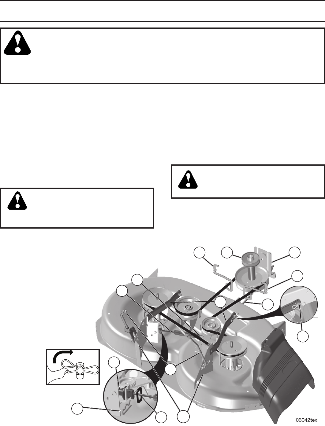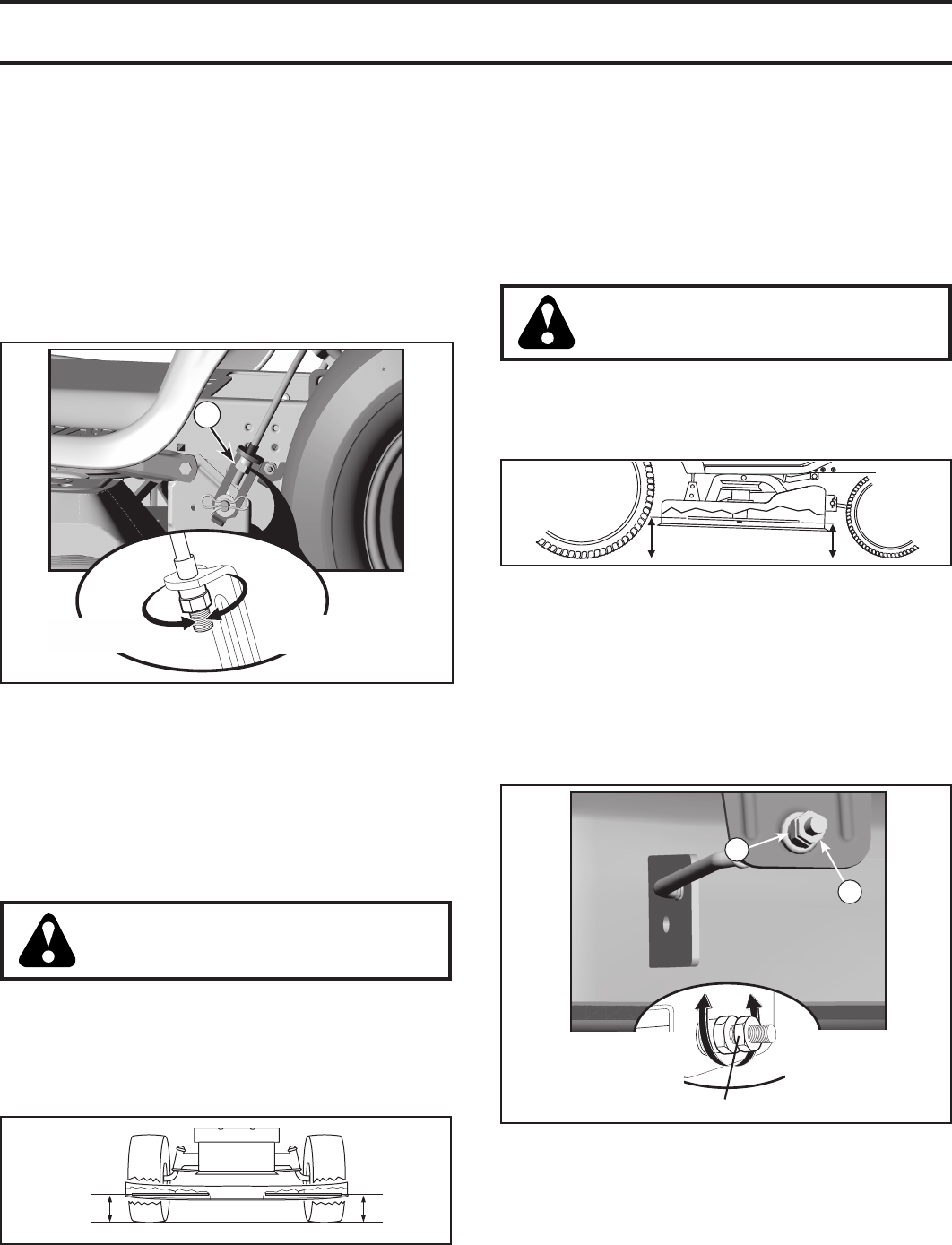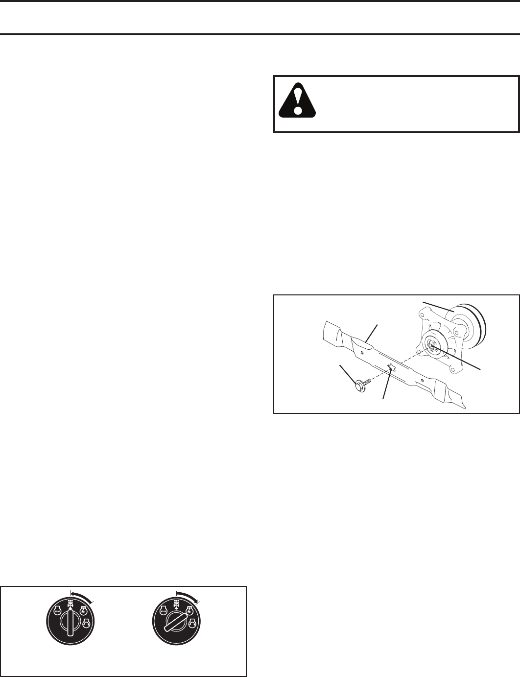 and burn. Do not allow the mower deck to plow leaves