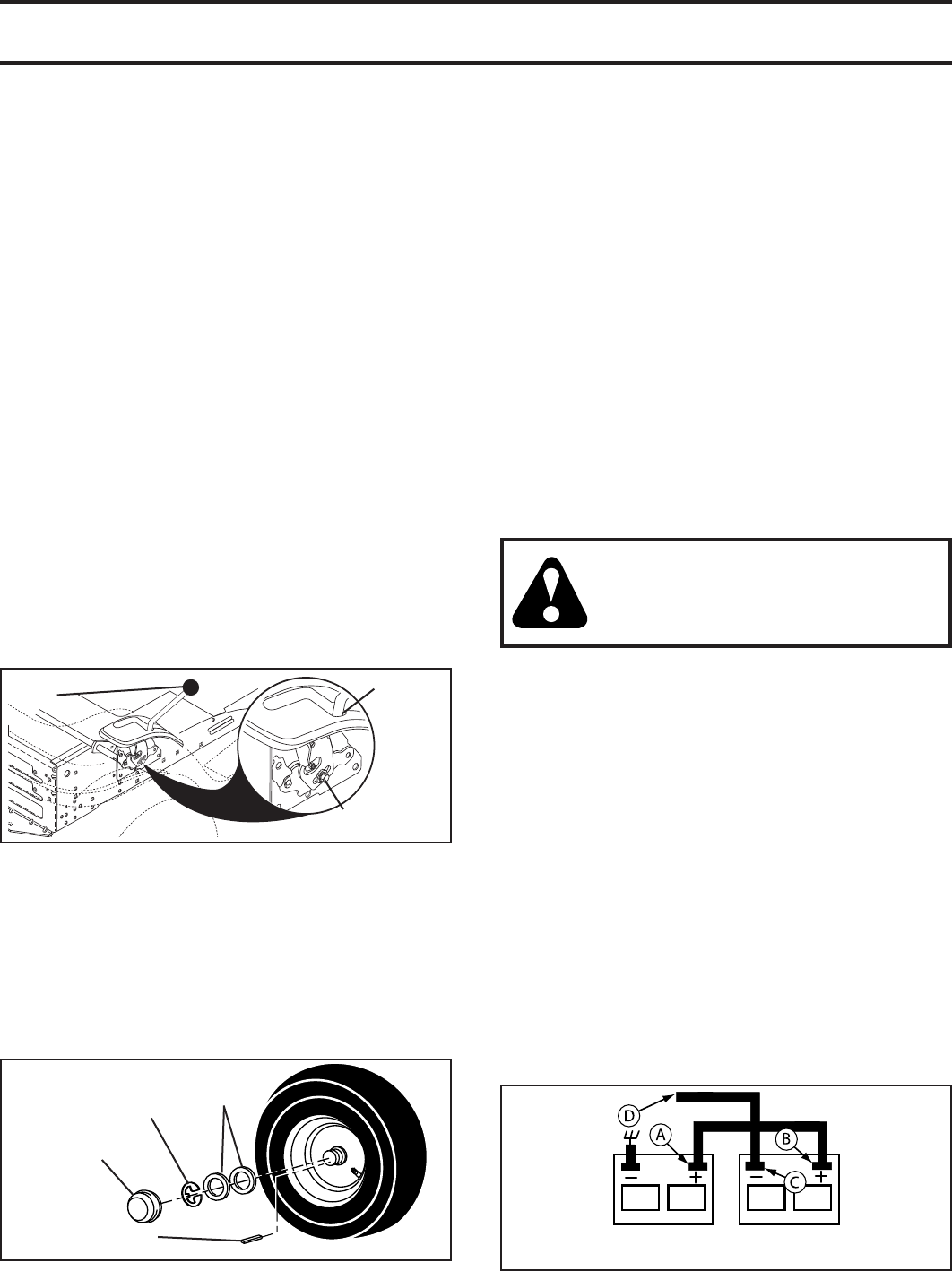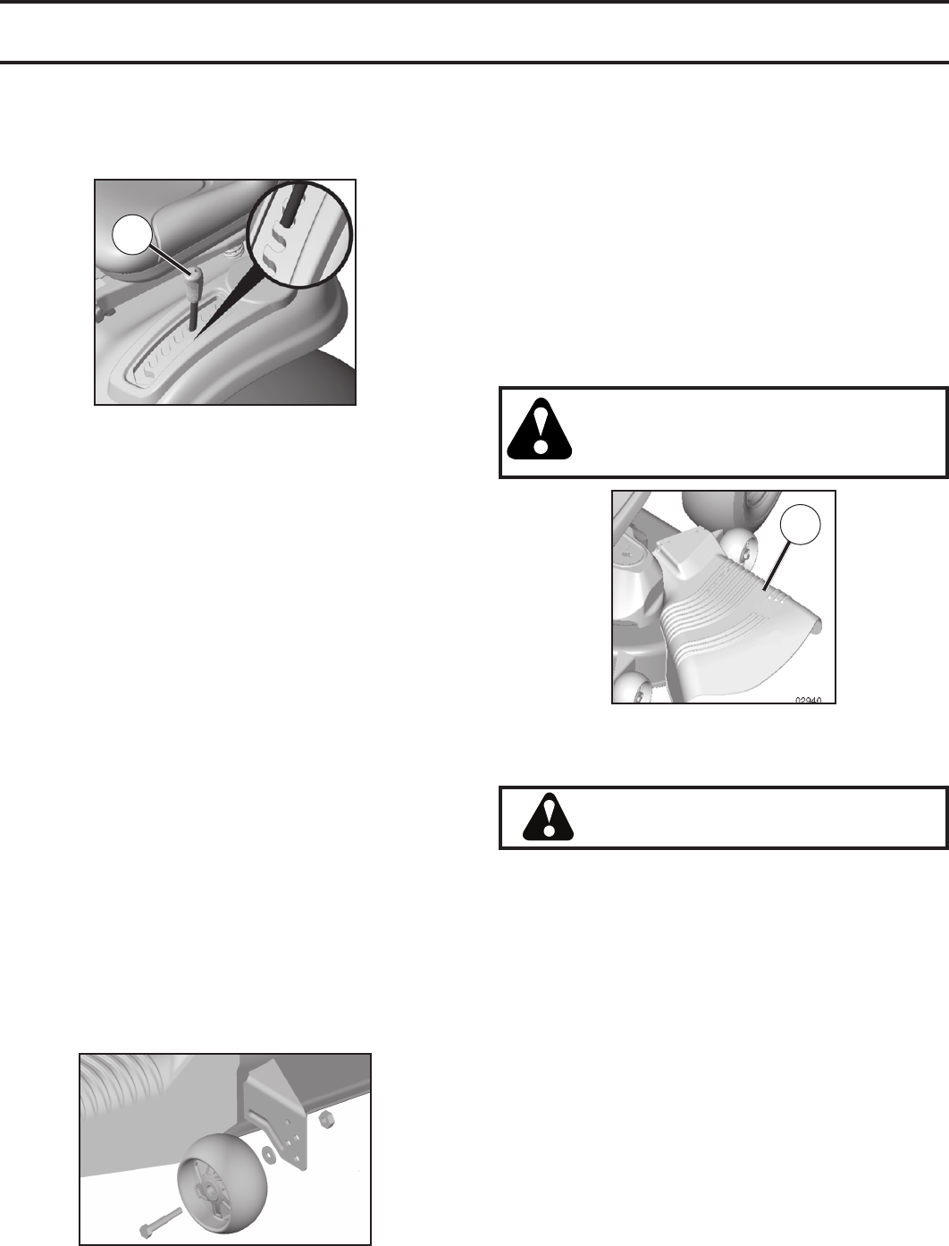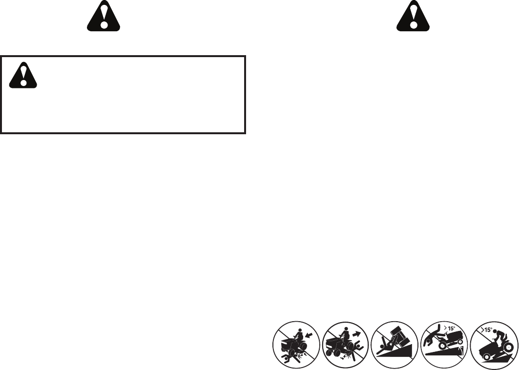 • Do not mow on wet grass. Tires may lose traction.