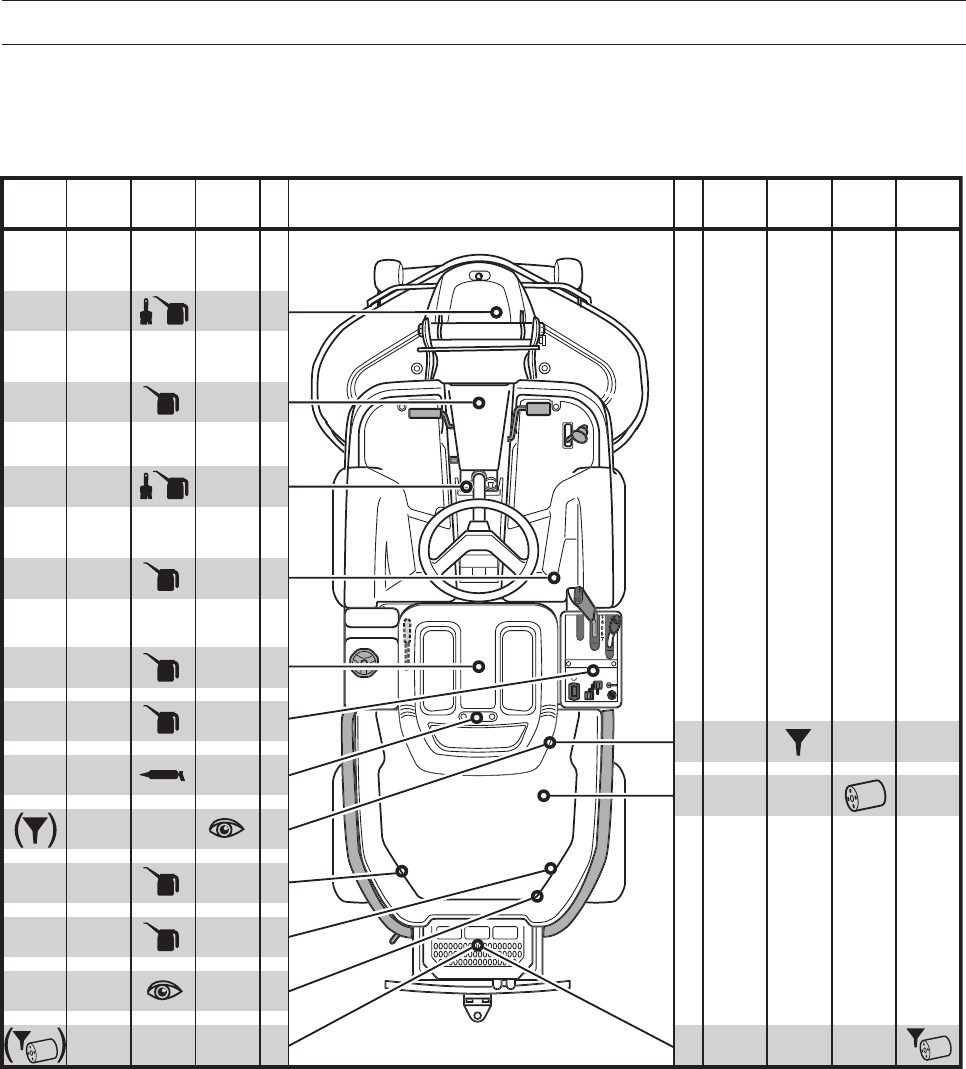 5. Check/adjust cutting height setting (50 hours).
