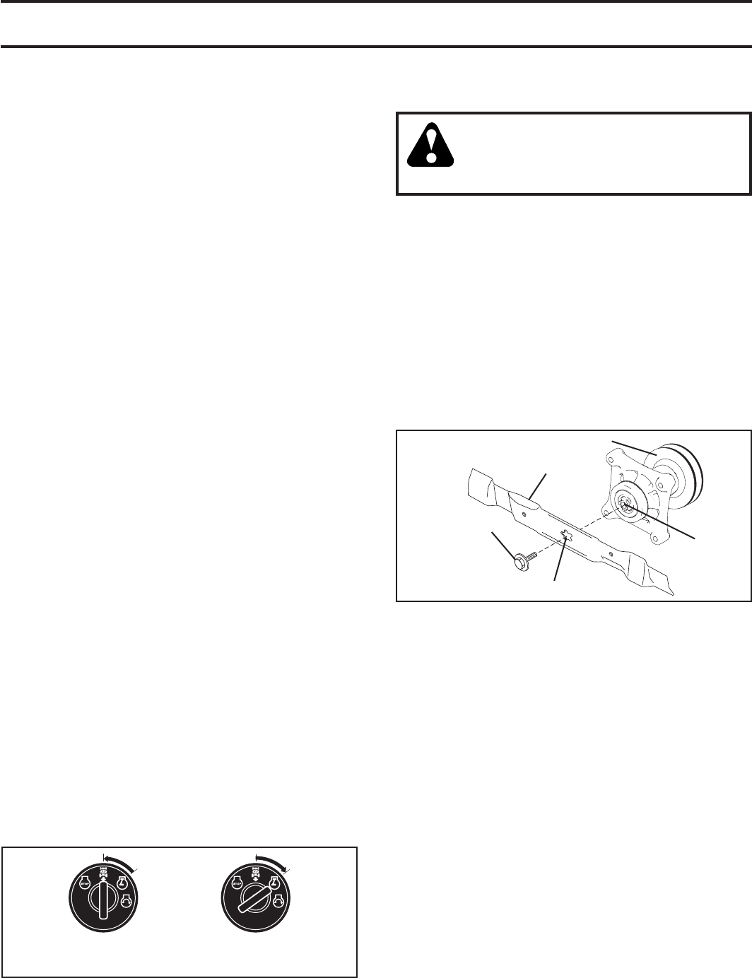• Disengage blades when not mowing. Shut off engine
