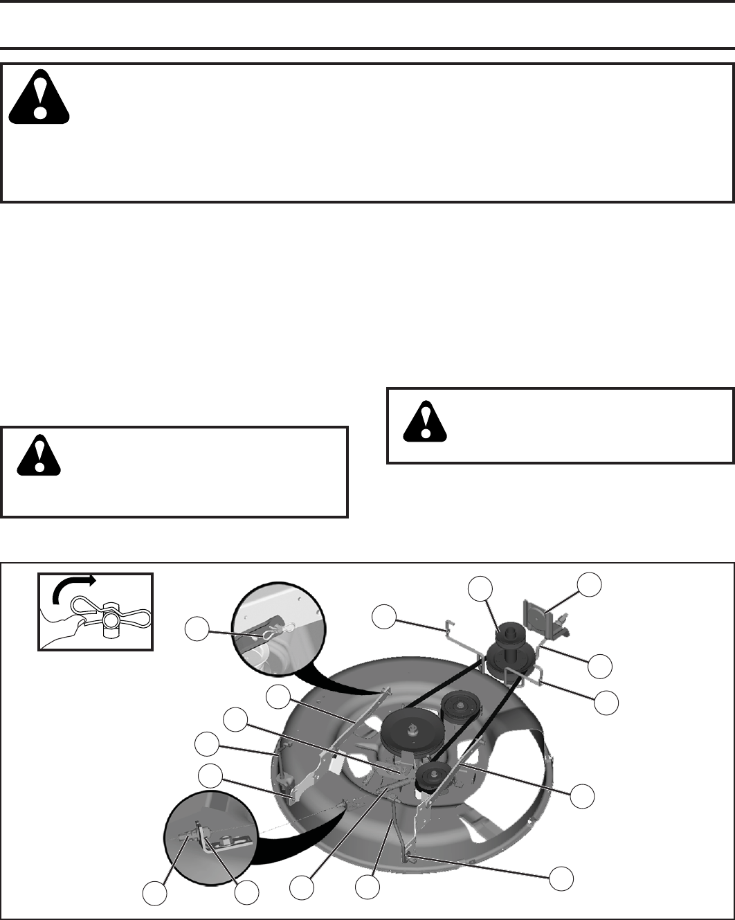 not allow the mower deck to plow leaves or other debris
