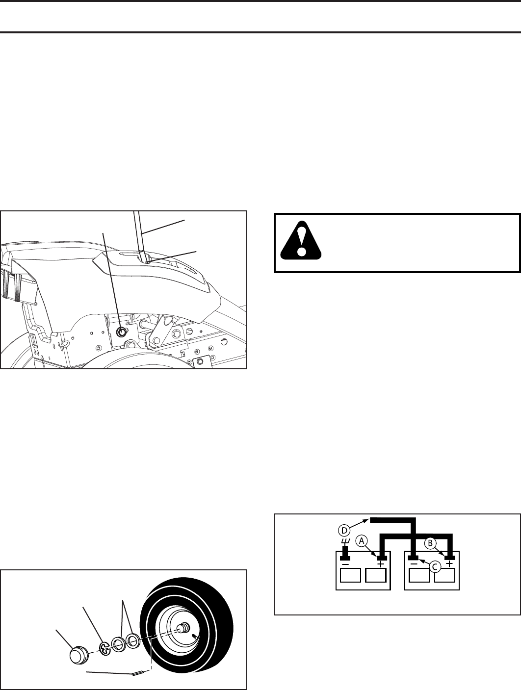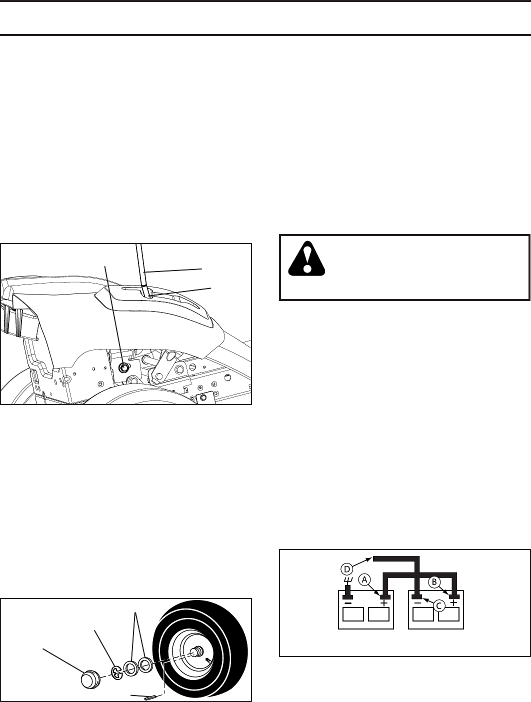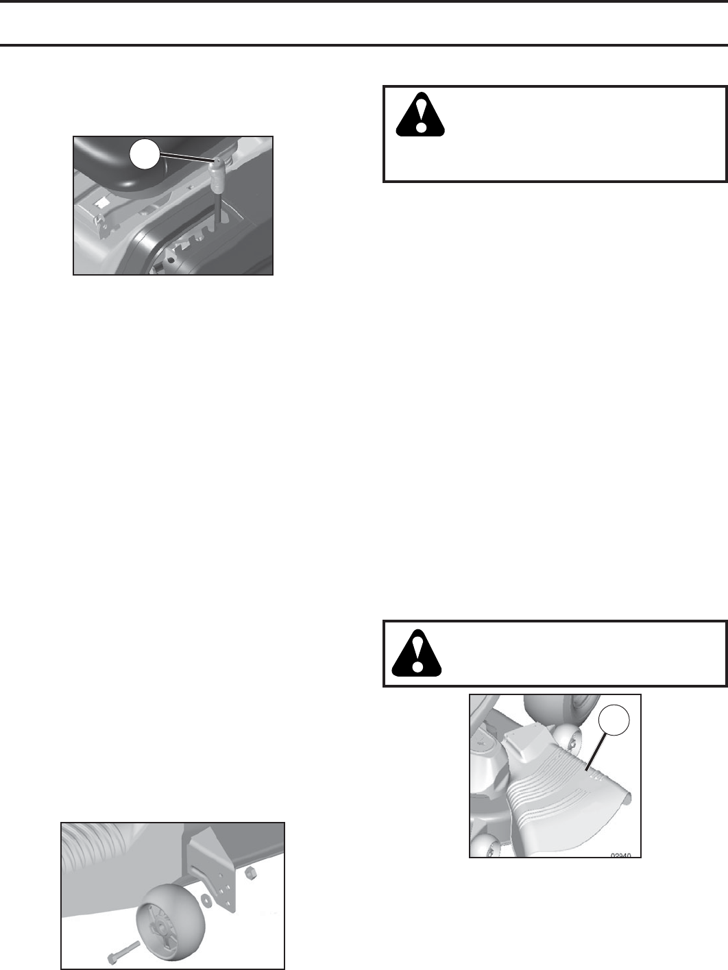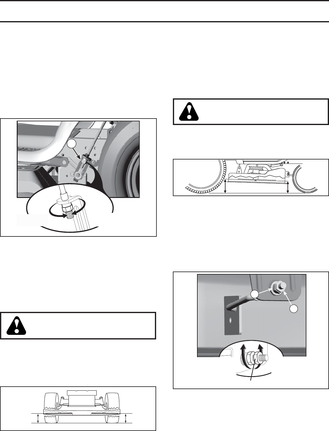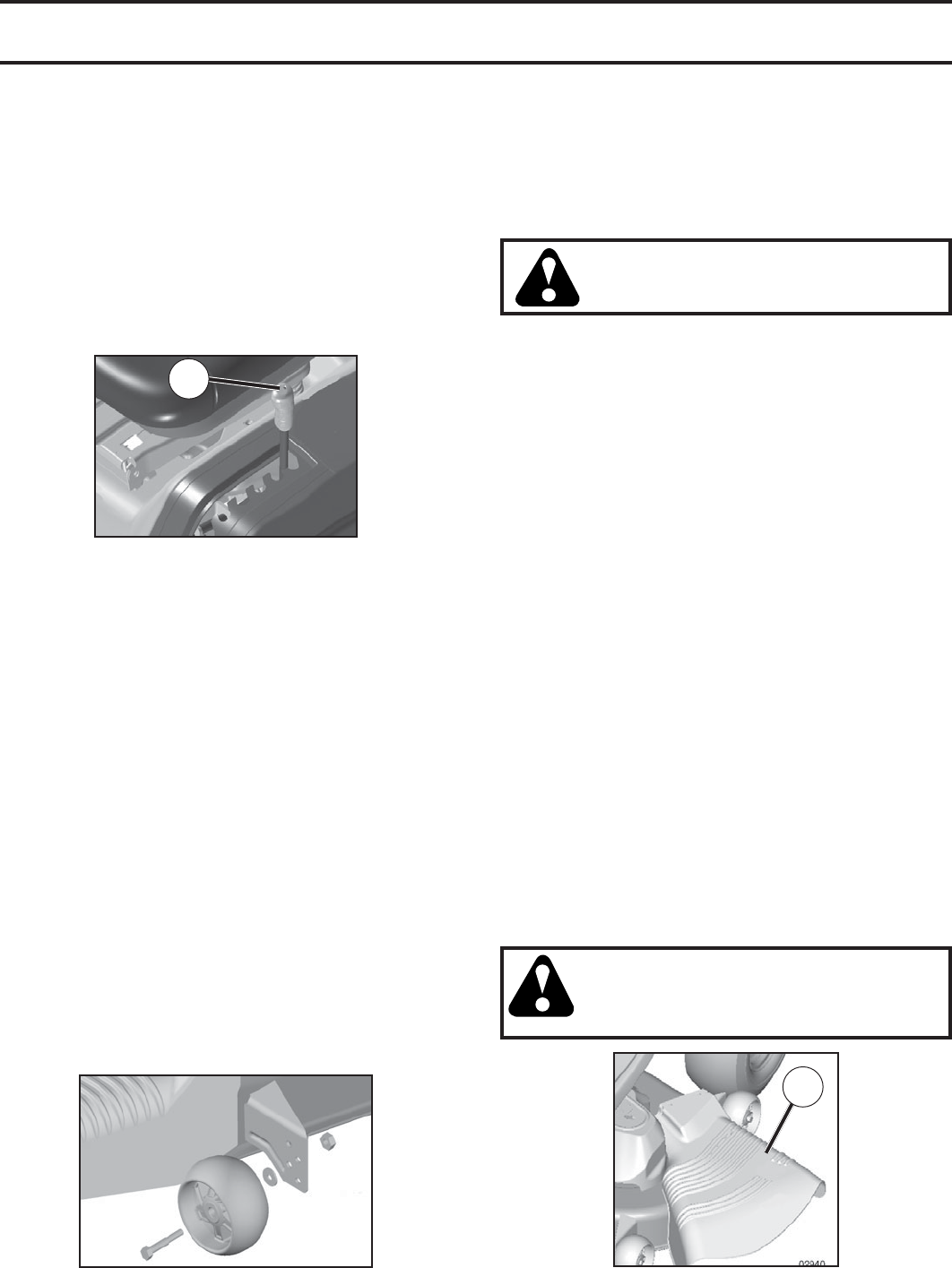 • Do not mow on wet grass. Tires may lose traction.