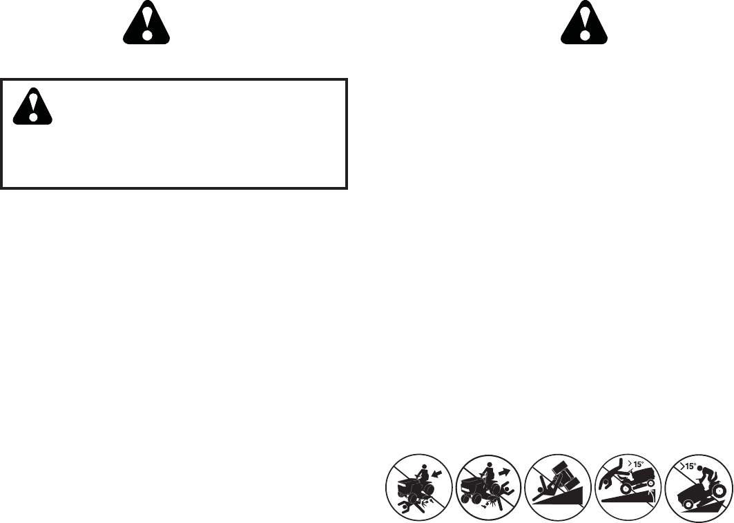 • Do not mow near drop-offs, ditches, or embankments.