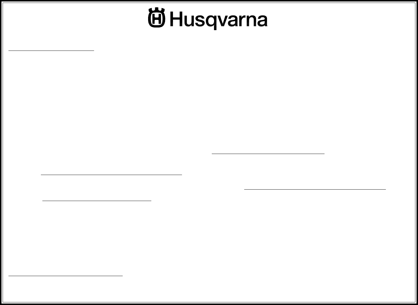 filled out and mailed to Husqvarna Forest & Garden Company. This card should be mailed within ten (10) days