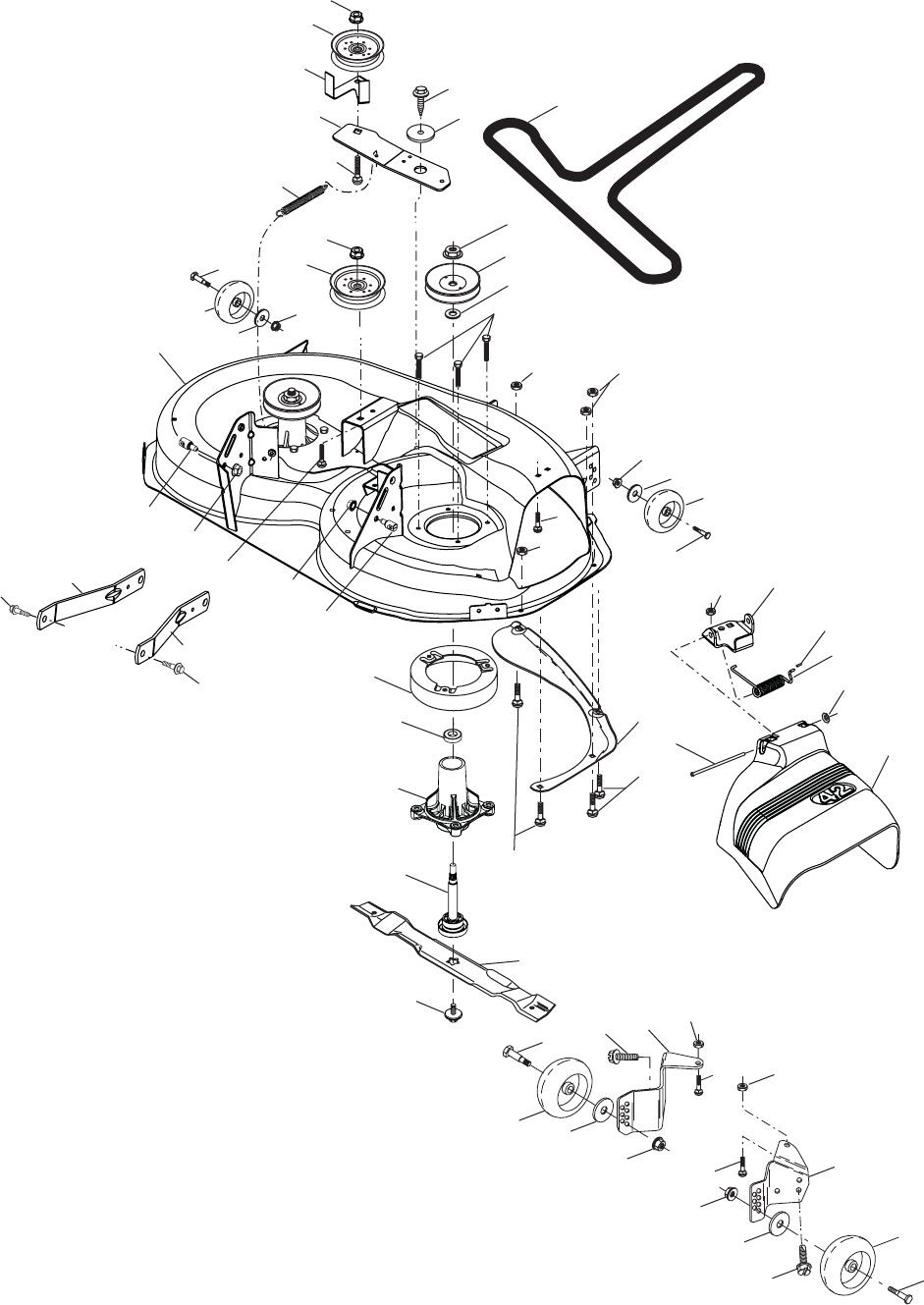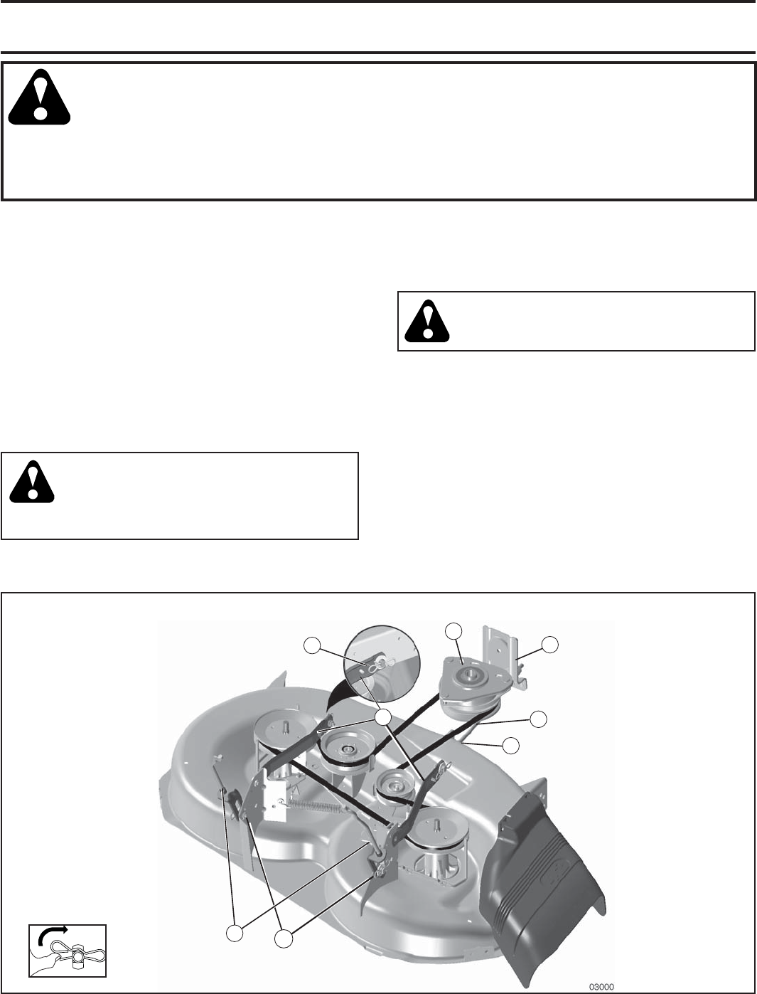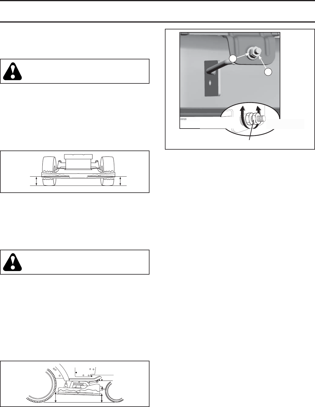 and burn. Do not allow the mower deck to plow leaves