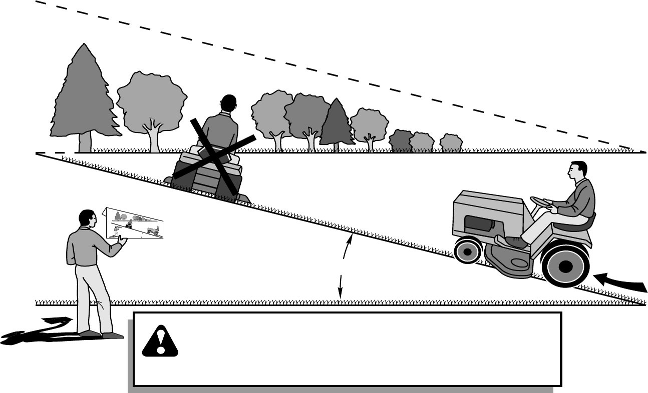 • Avoid starting or stopping on a slope. If tires lose trac-