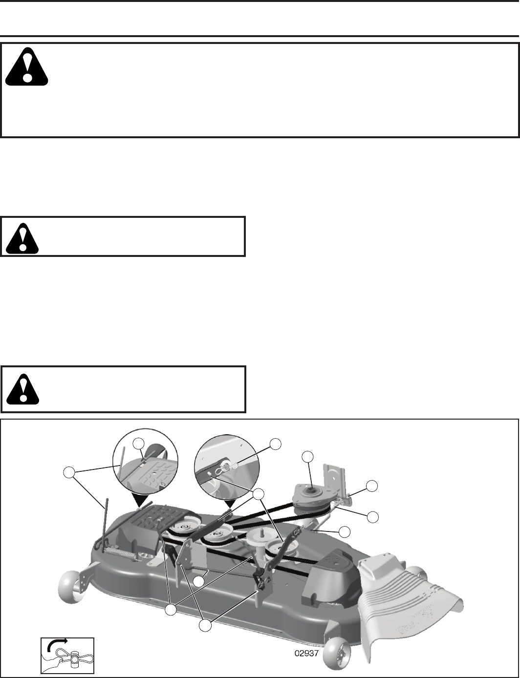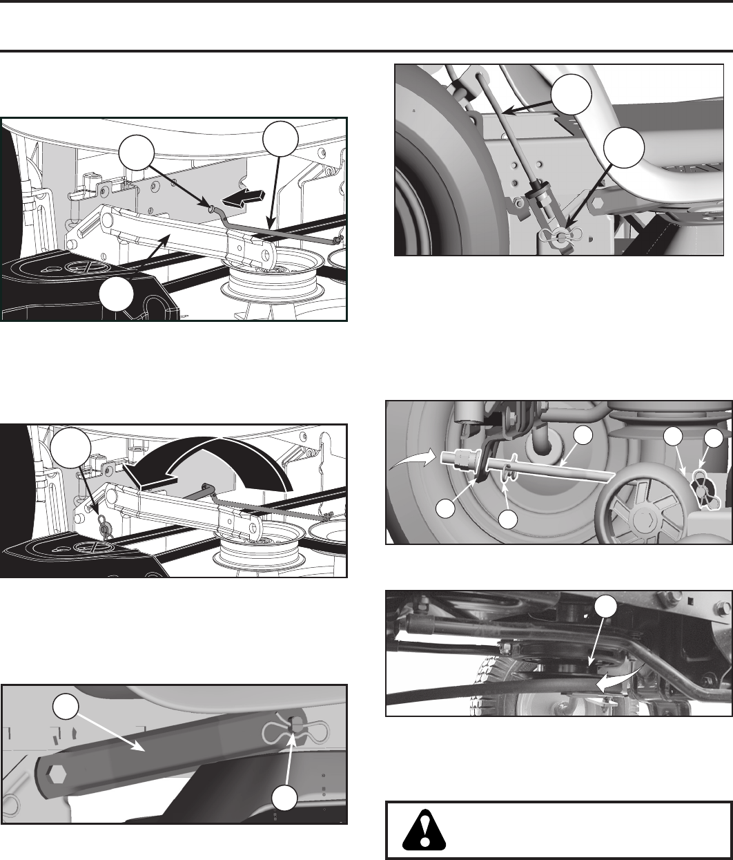 and burn. Do not allow the mower deck to plow leaves