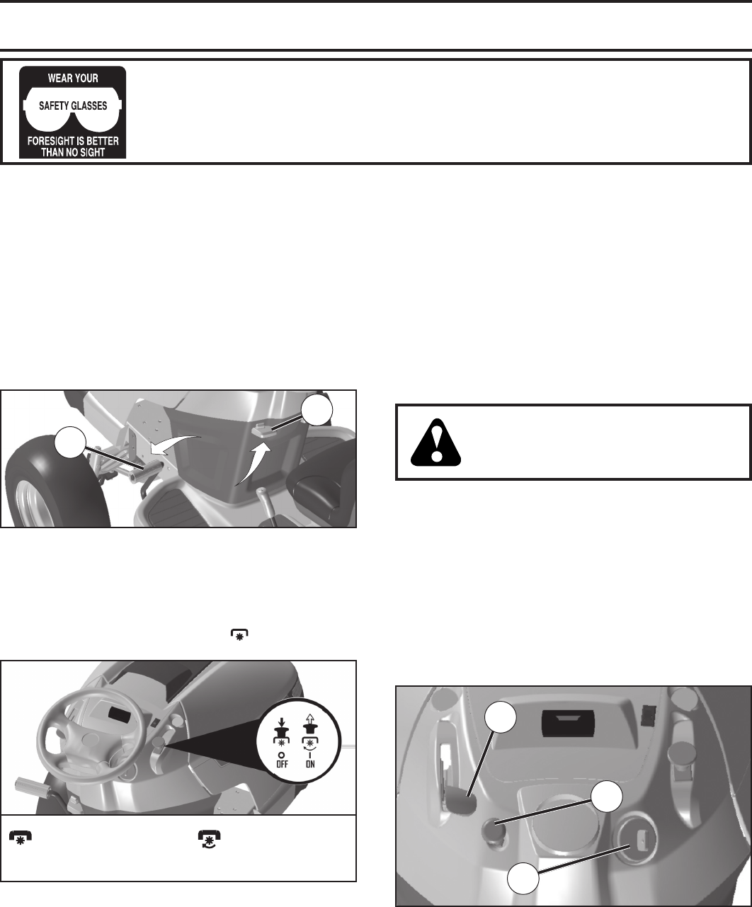 • Disengage blades when not mowing. Shut off engine
