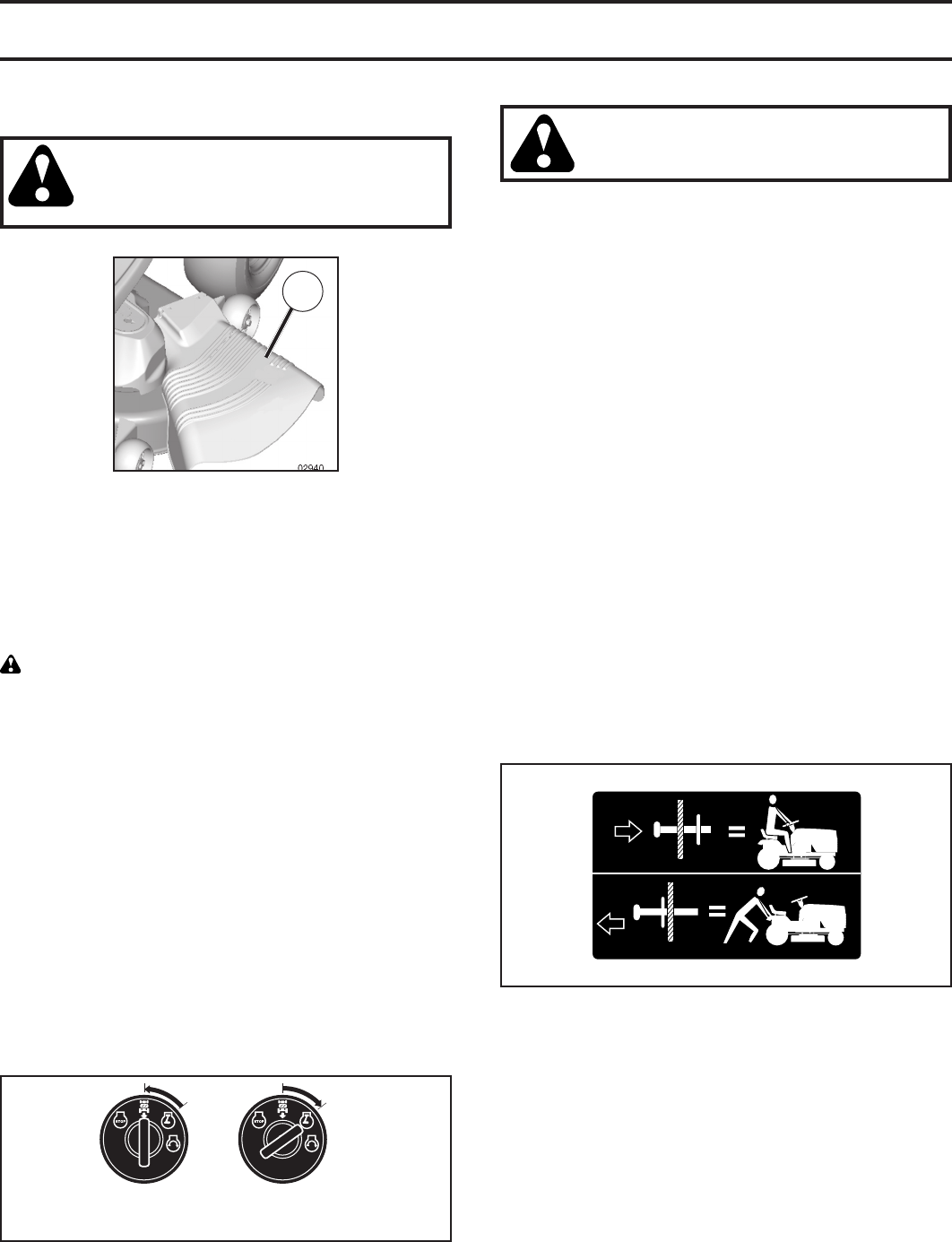 • Do not mow in reverse unless absolutely necessary.