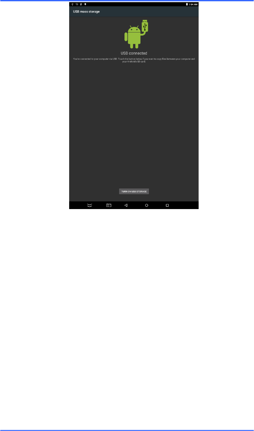To disconnect the tablet from the PC, click on “TURN OFF USB STORAGE” in the Notification