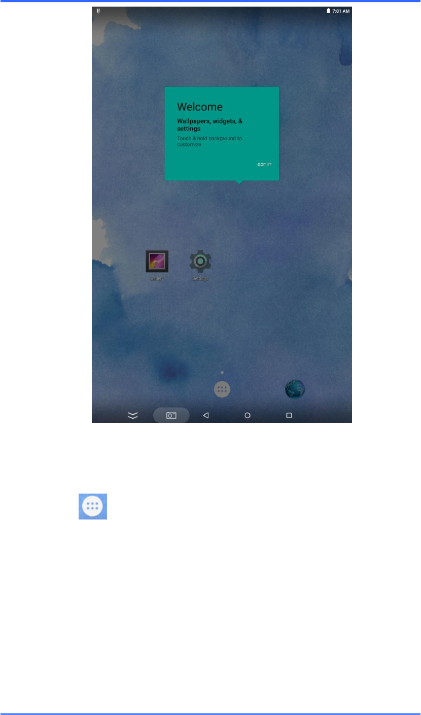 Gallery: used for the previewing and viewing the stored image files on the tablet as well