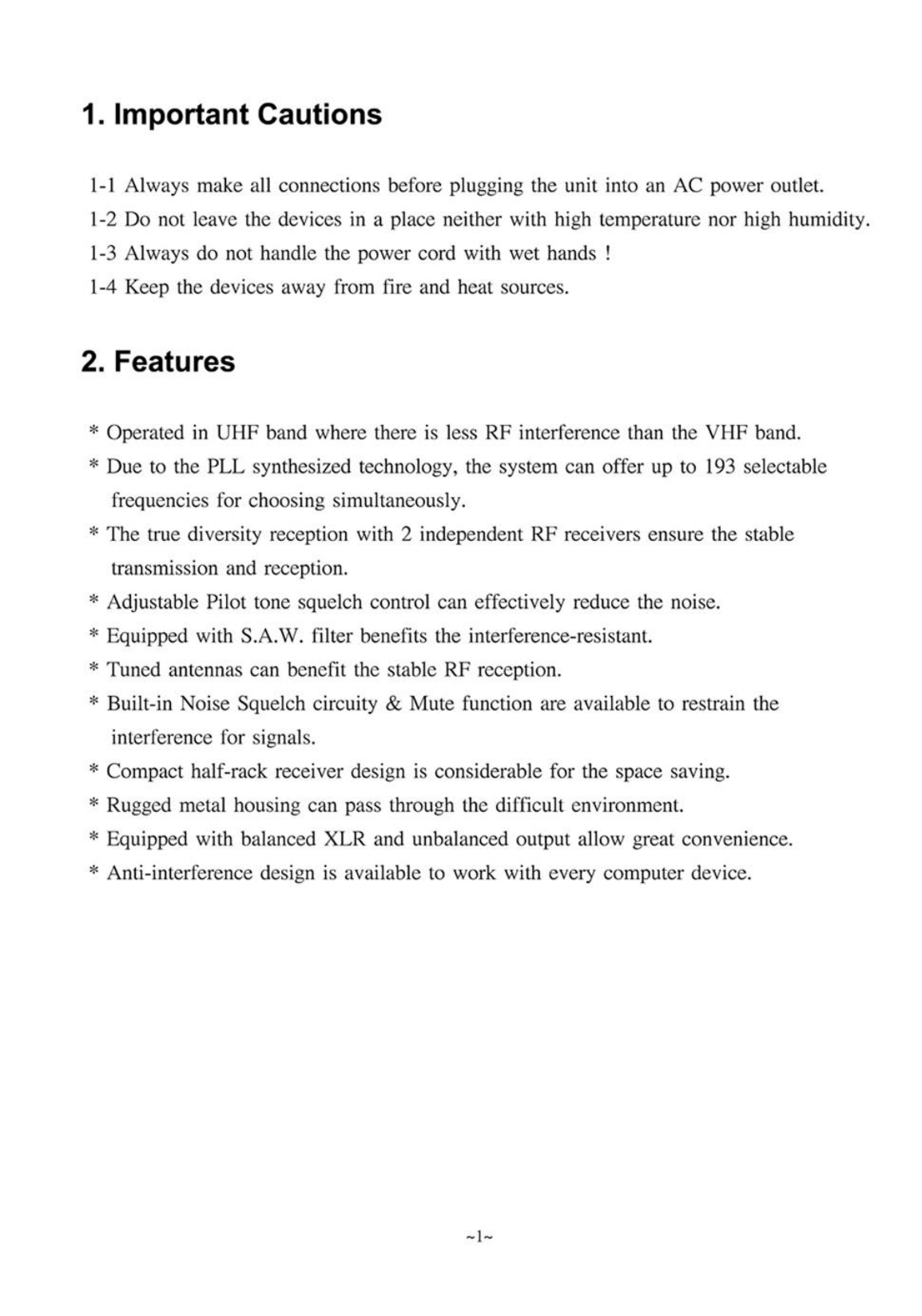 This equipment complies with Part 74 of the FCC Rules.