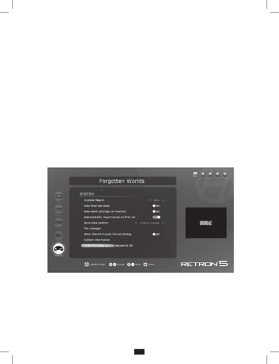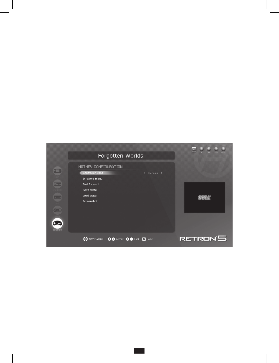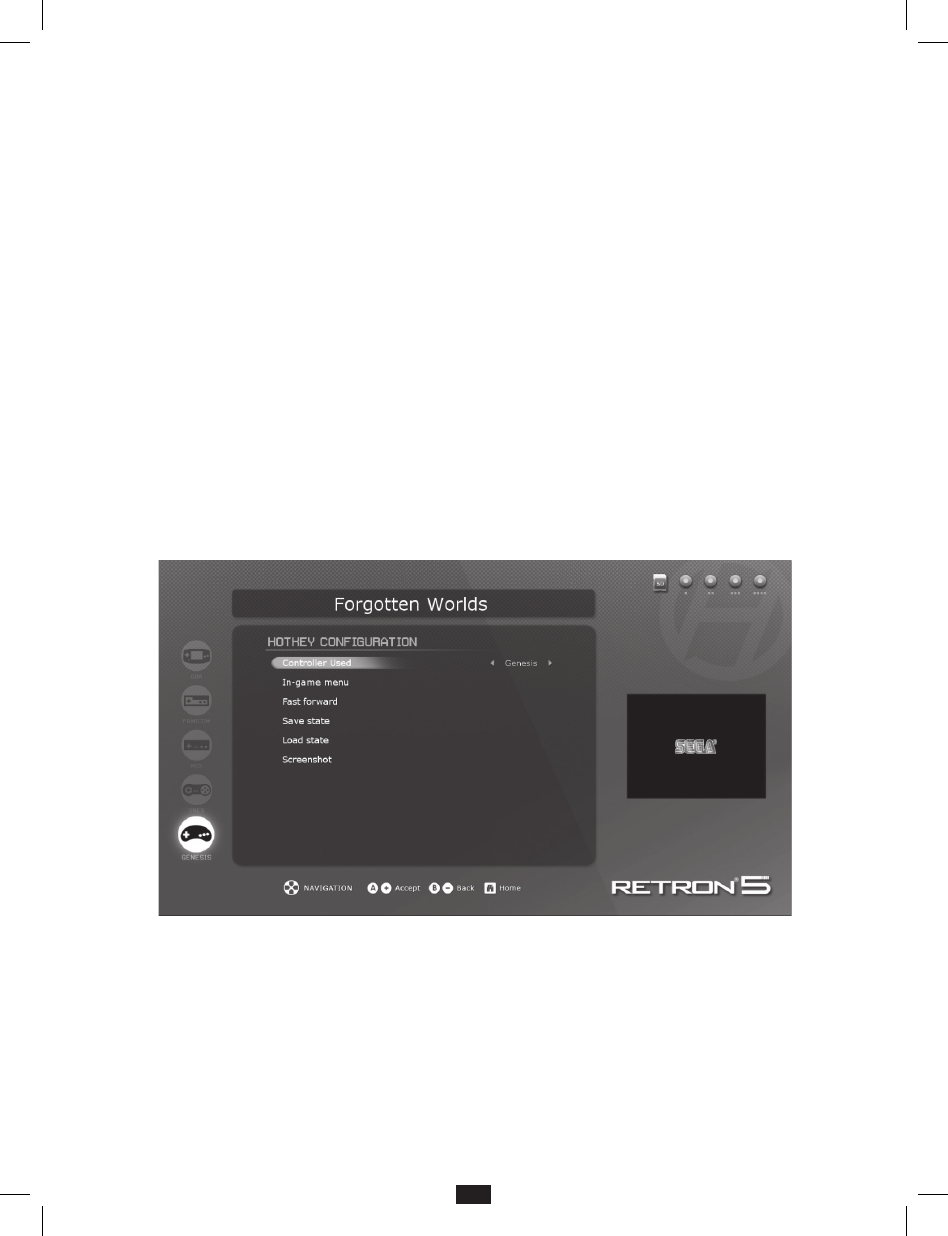 Acesse o menu do jogo, pressionando o botão home do RetroN 5.