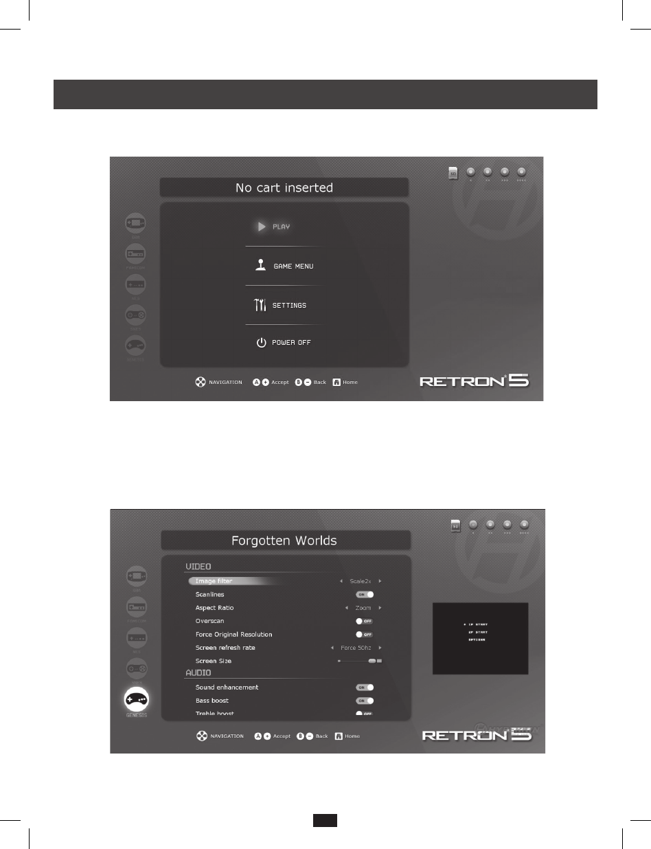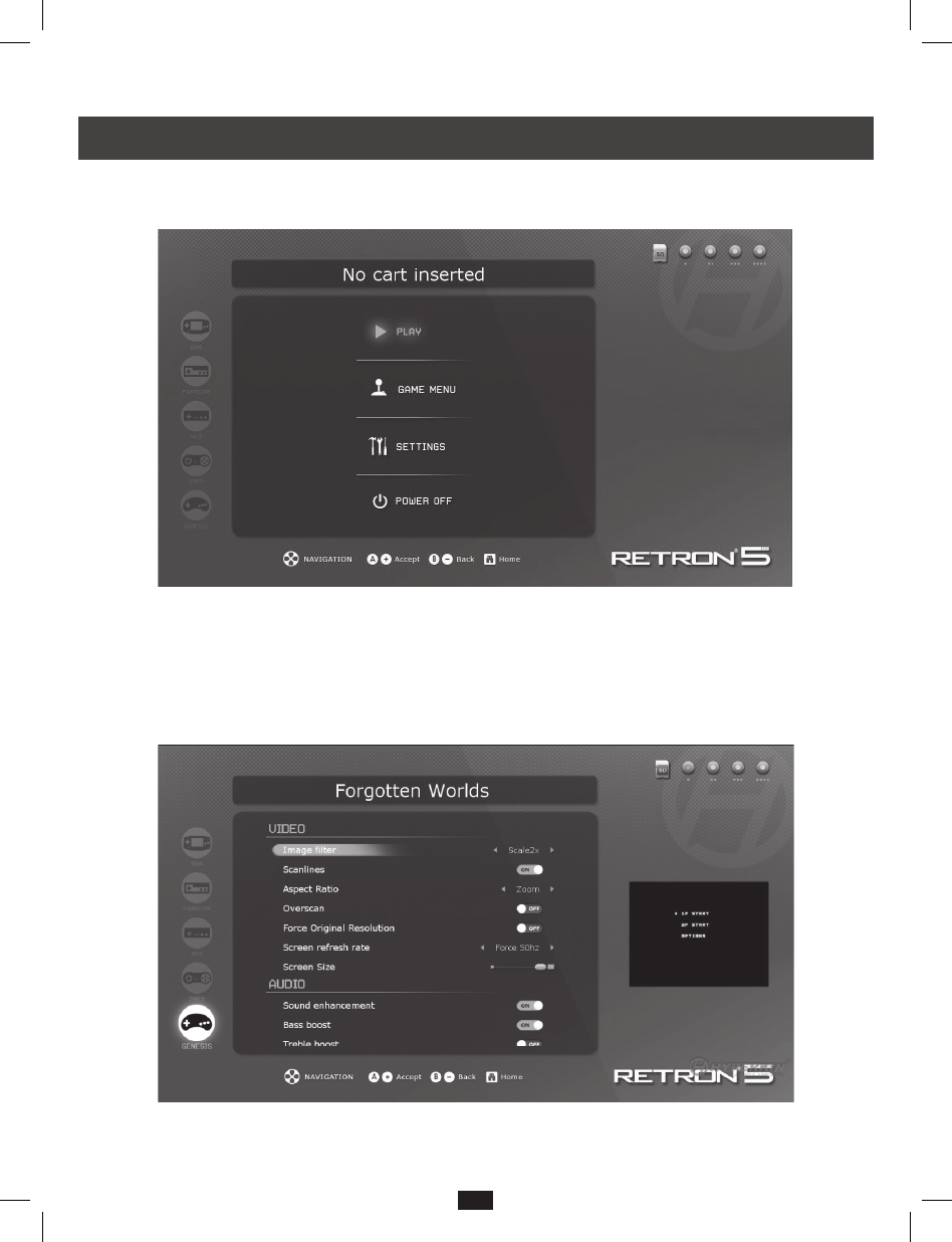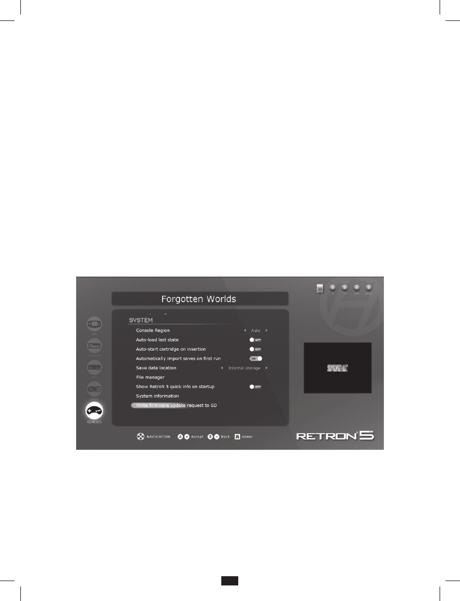 Acesse o menu do jogo, pressionando o botão home do RetroN 5.