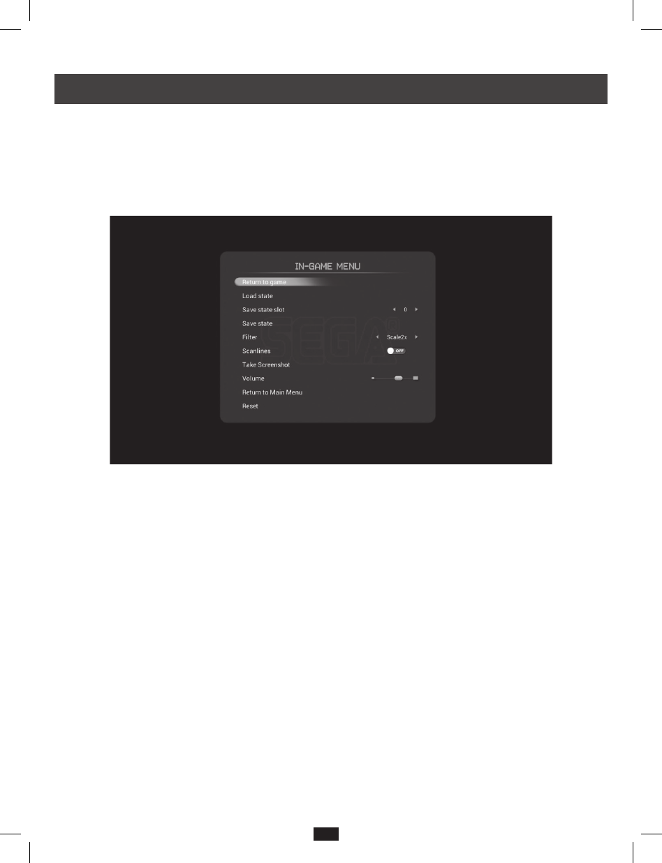• Scanlines – Linha de Varredura- Alterne estas linhas antes ou durante o jogo.