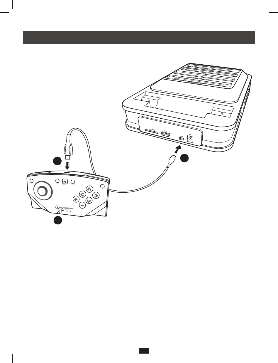 2. Insira o cabo Mini USB na ranhura Mini USB da consola RetroN.