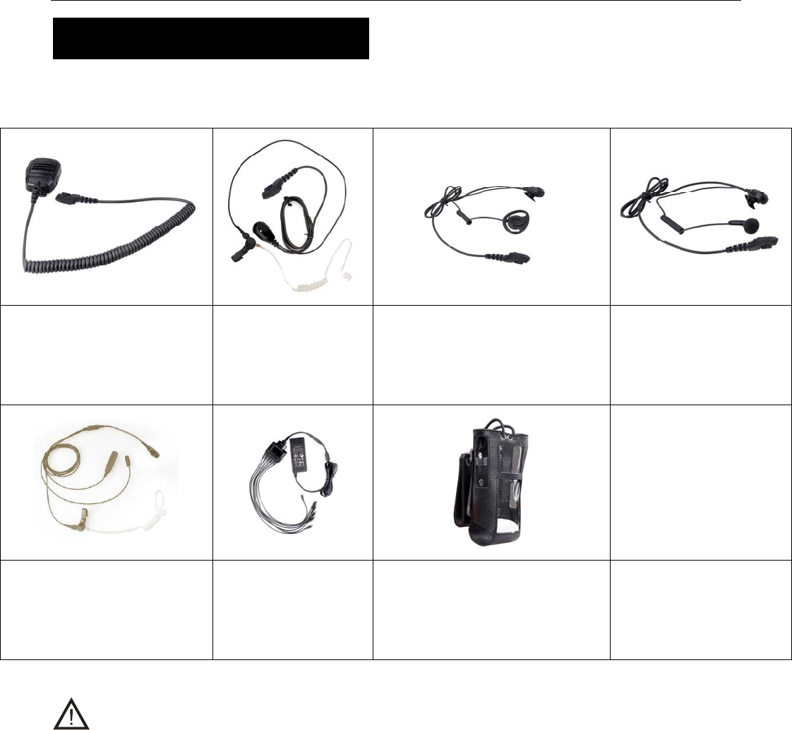 Caution: Use the accessories specified by Hytera only. If not, Hytera shall not be liable for any