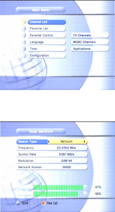 Main Menu channel List TV Channels