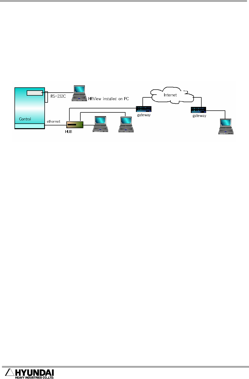 Hi4 robot controllers via RS-232C cable or Ethernet to and from external PCs. Ethernet is