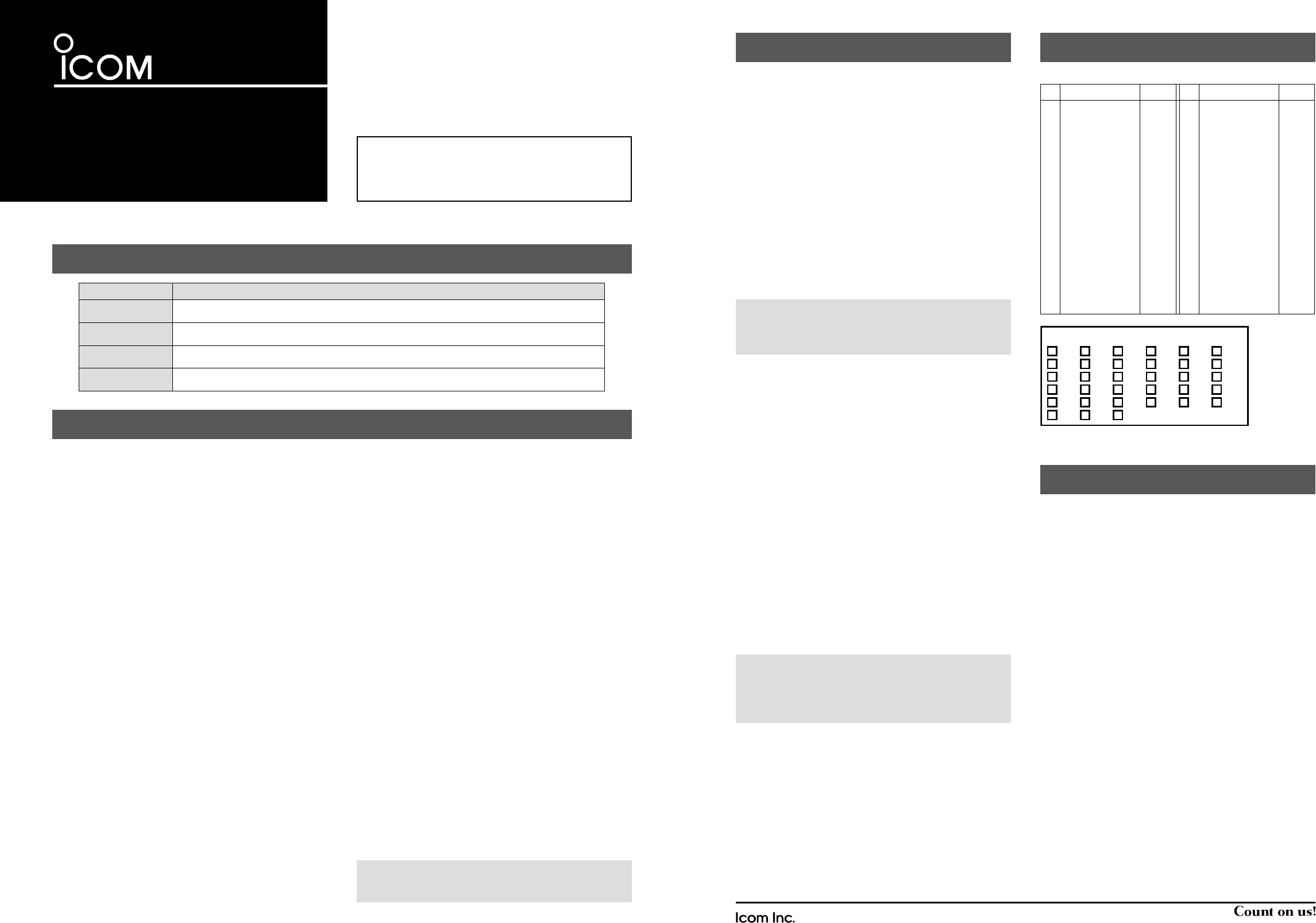 Icom, Icom Inc. and the Icom logo are registered trademarks of Icom Incor-