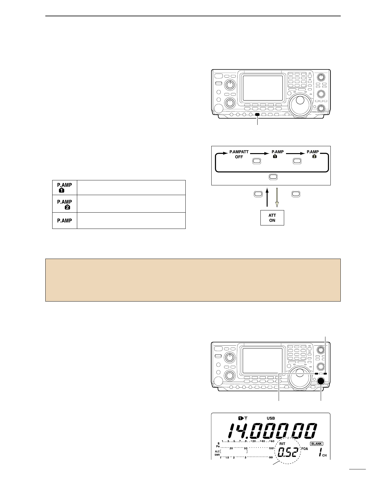 Push [P.AMP/ATT] for 1 sec. to set the attenuator ON.
