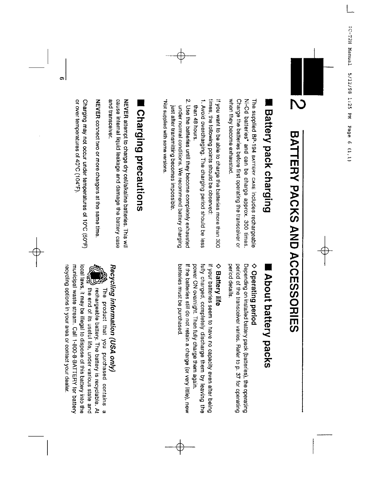 ICOM orporated IC-T2H Scanning Receiver that transmits within the Amateur Band User Manual 47455