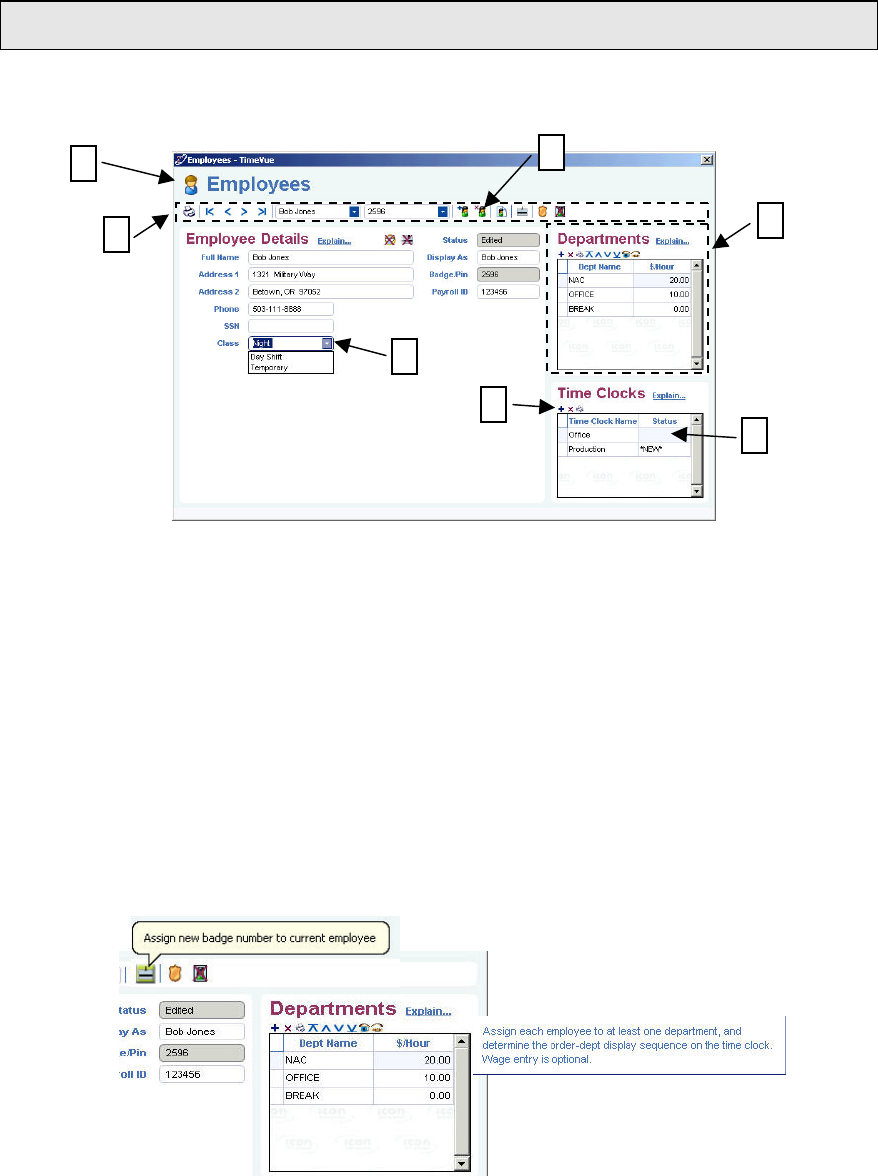 example, there is an Employee Details, Departments, and Time Clocks section.