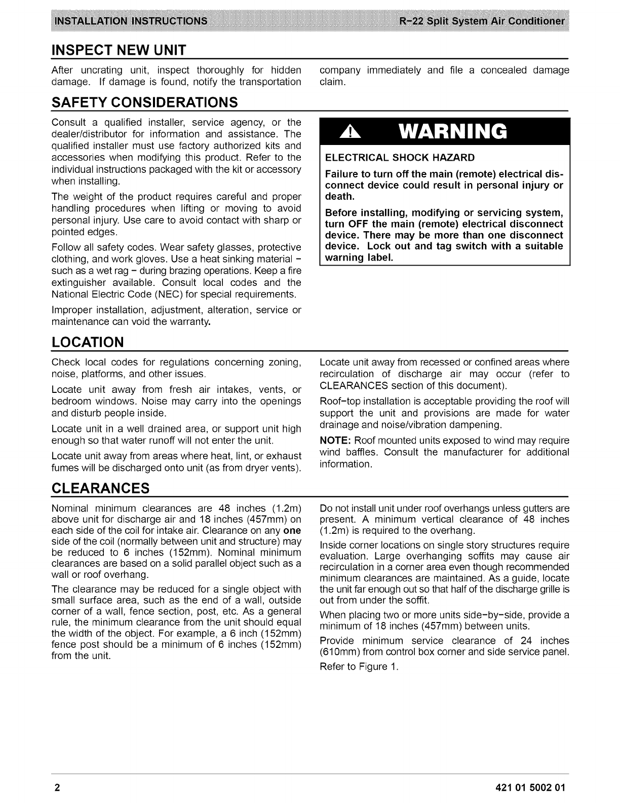 After uncrating unit, inspect thoroughly for hidden company immediately and file a concealed damage