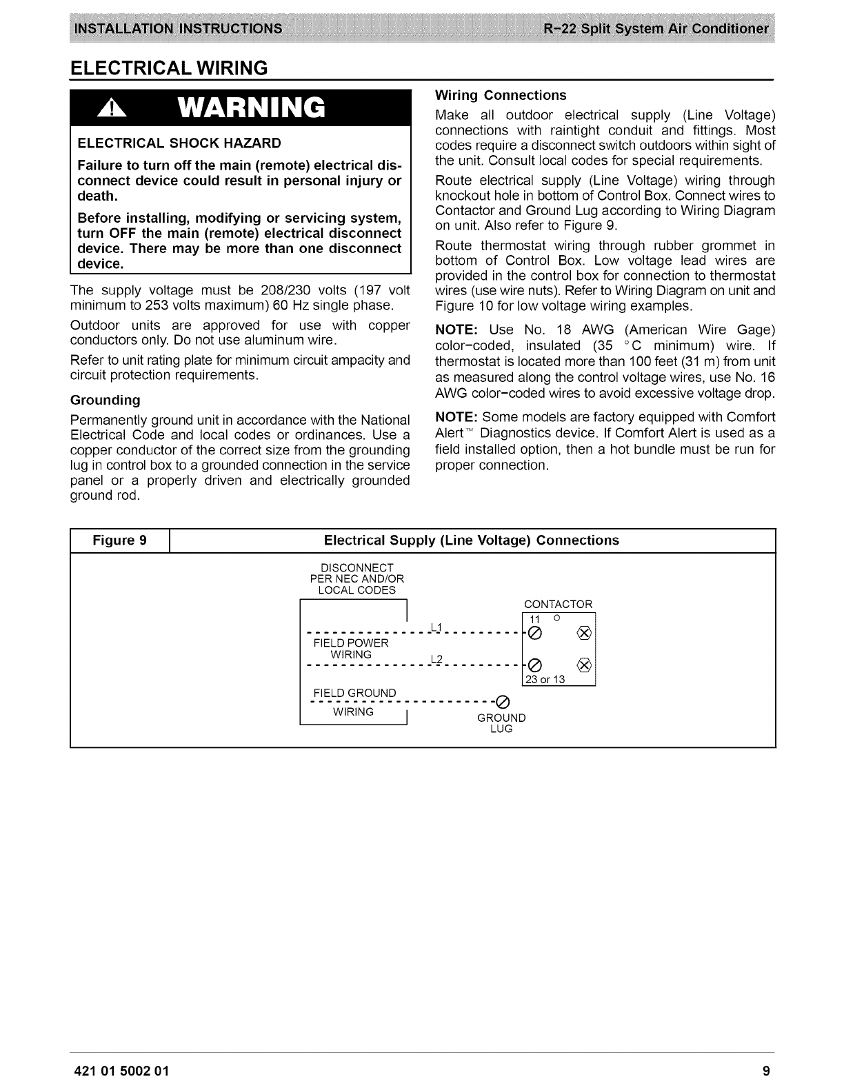 Control circuit < 17VAC 2. Low line voltage (contact utility if voltage at disconnect is low)
