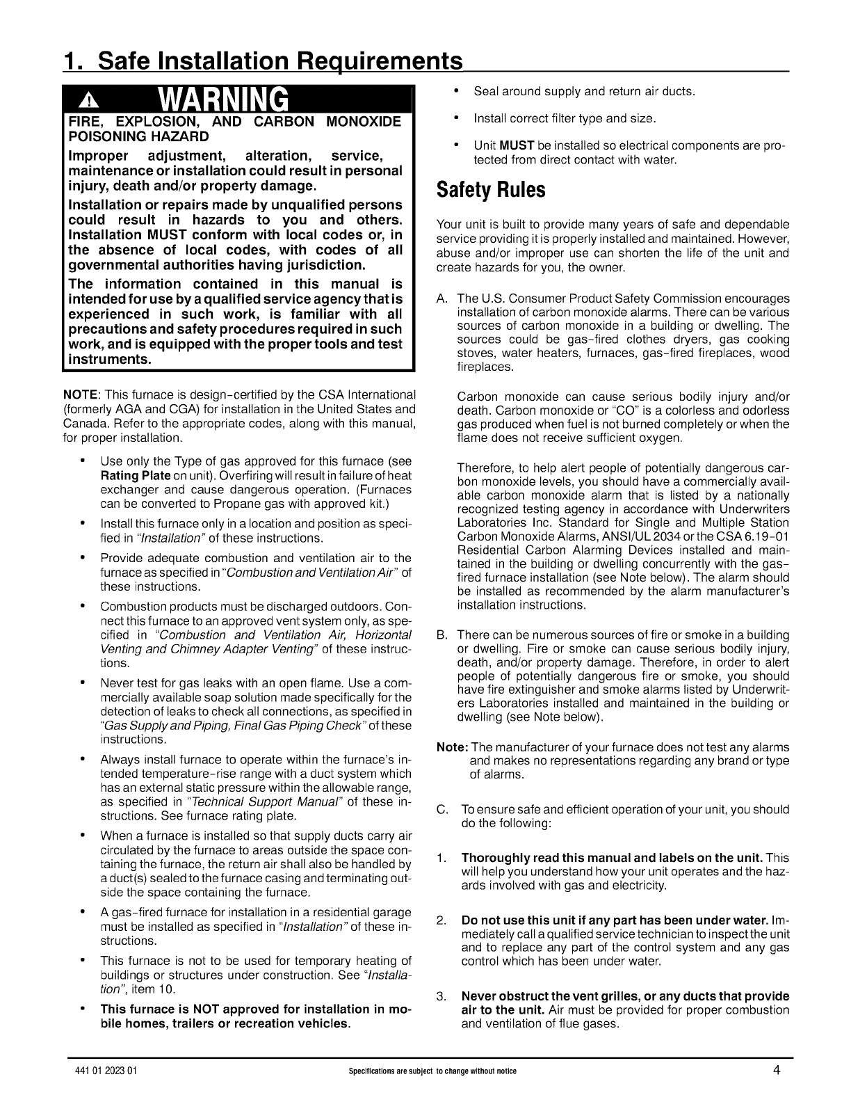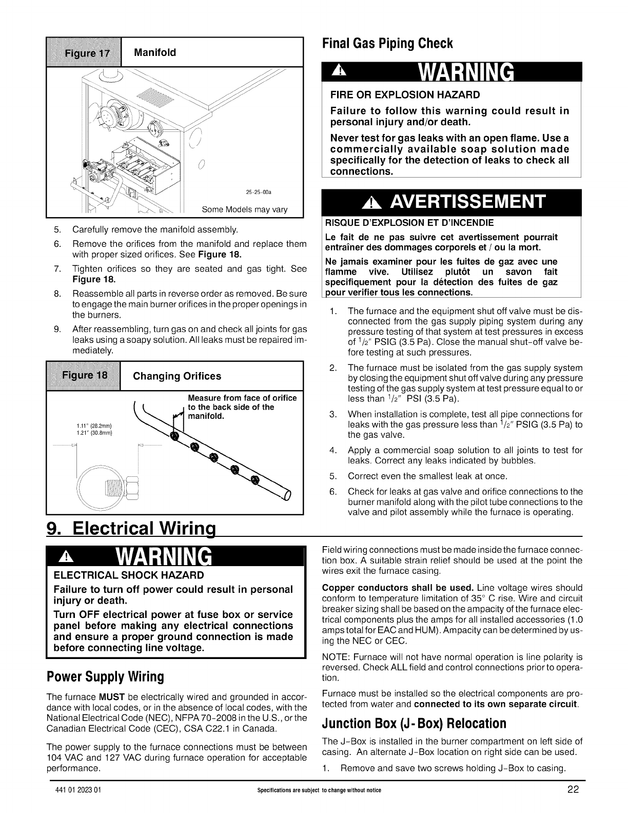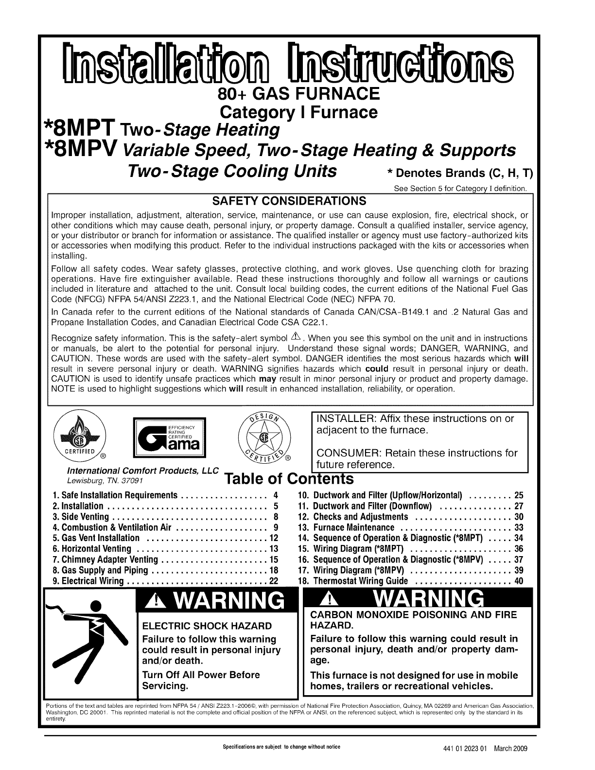 Code (NFCG) NFPA 54/ANSI Z223.1, and the National Electrical Code (NEC) NFPA 70.