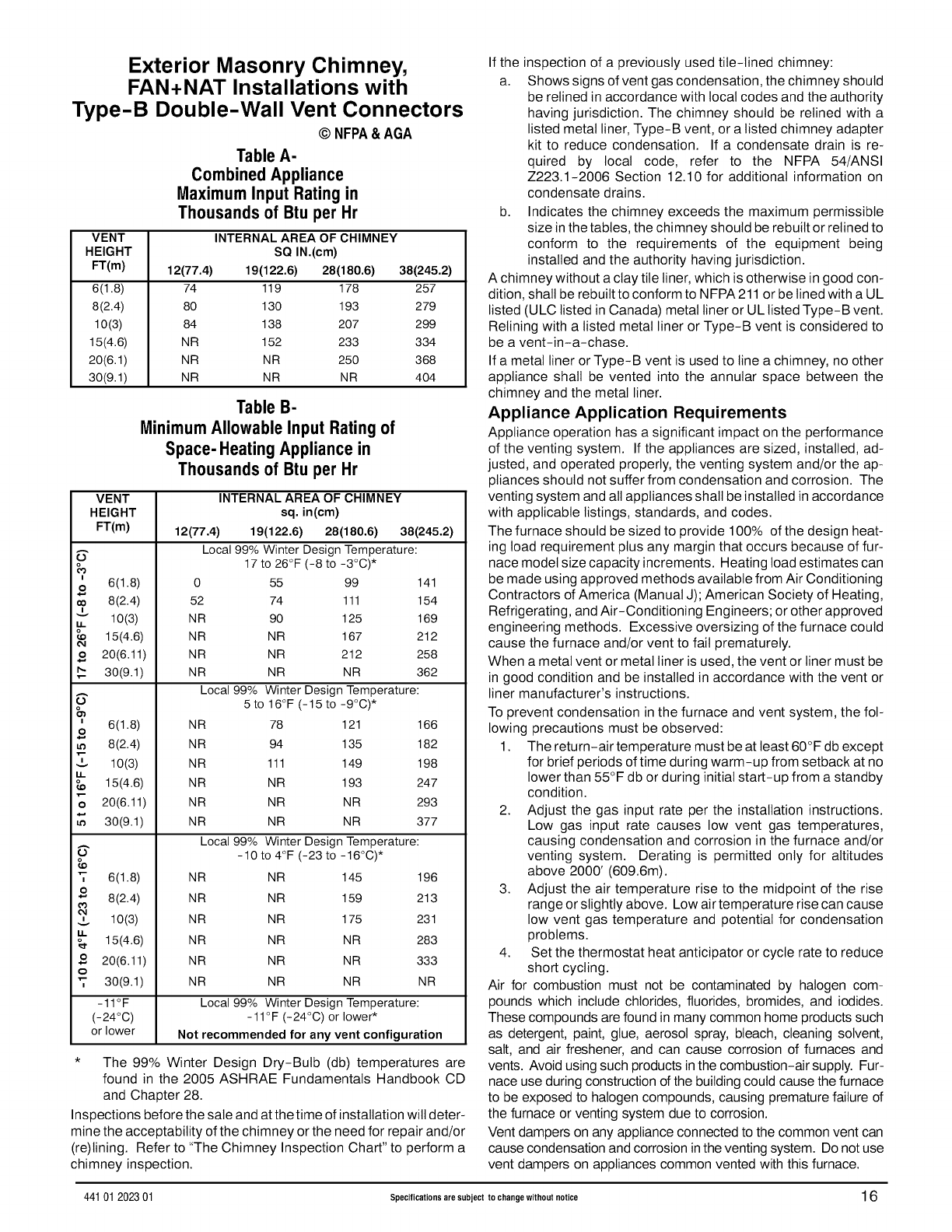 Portions of the text and tables are reprinted from NFPA 54 /ANSi Z223.1-2006@, with permission of National Fire Protection Association, Quincy, MA 02269 and American Gas Association