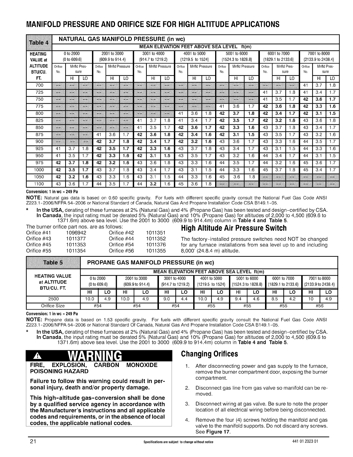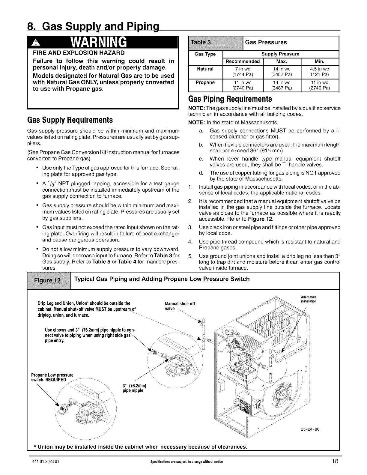 included in literature and attached to the unit. Consult local building codes, the current editions of the National Fuel Gas
