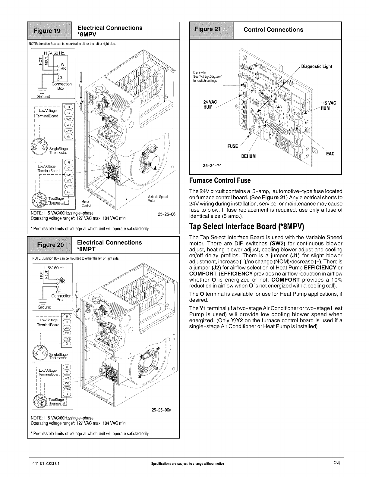 Two-Stage Thermostat with Two-Stage Furnace or Variable Speed Furnace (*MPT/MPV Models)