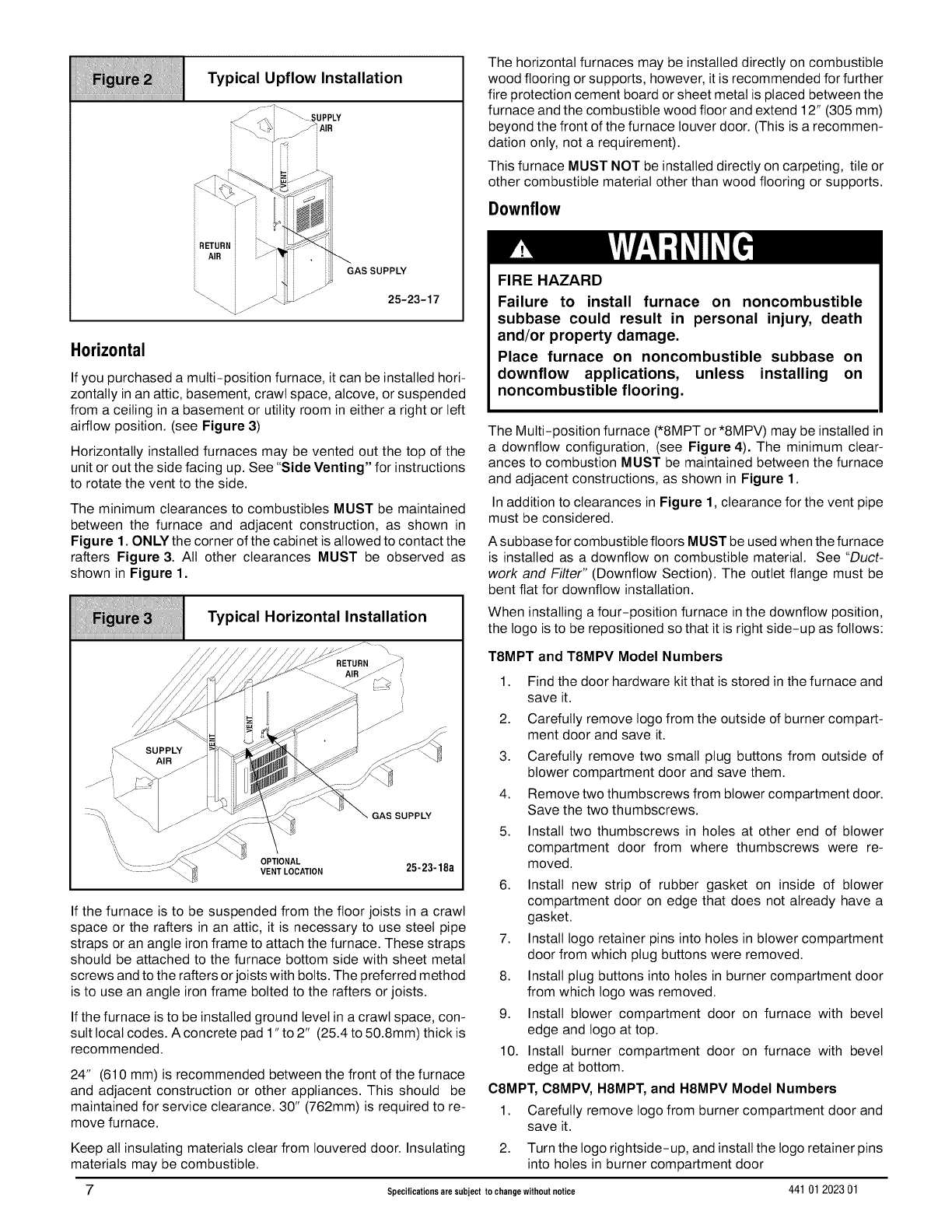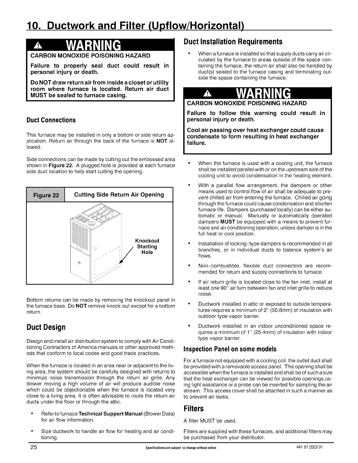 10. Ductwork and Filter (Upflow/Horizontal) ......... 25