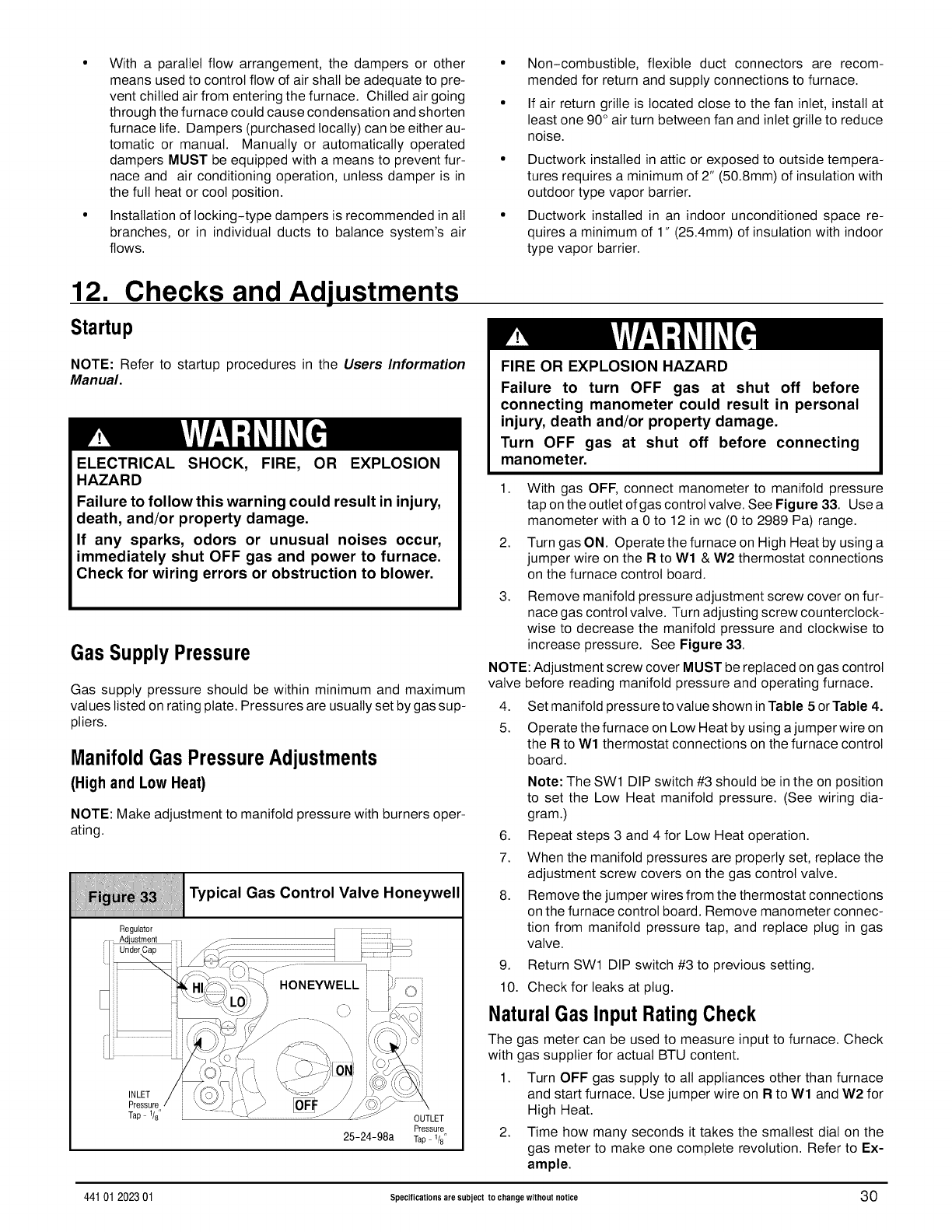 Calculated Input (BTU) Rate: (See Checks and Adjust-