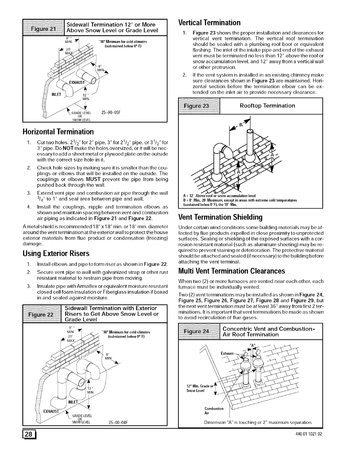 These instructions cover minimum requirements and conform to existing national standards and safety codes. In some instances, these instructions
